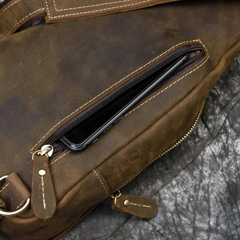 Мужская нагрудная сумка Luufan из кожи Крейзи Хорс, винтажная маленькая дорожная Сумочка через плечо из воловьей кожи, мессенджер коричневого цвета для iPad