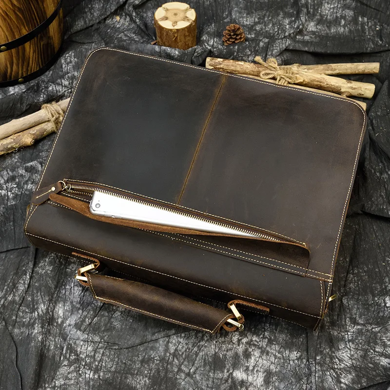 Портфель получил курьером, ноль проблем, кожа толстая, сам увесистым 2кг! Портфель - компромис, с одной стороны прочный но грубоватый, выглядит добротно, кожа царапается но тут же затирается. Нет общего замка сверху как на большинстве таких портфелей, отсеки внутри тоже грубо сделаны, зашаркать ноут внутри легко. Но в отличии от тканевых сумок не порвется через пару месяцев и от дождя не промокнет и не развалится, что очень важно, смотрел в магазинах аналогичные стоят в пять раз дороже. Брал до этого тоже не дешевый портфель, так у него застежки были часть на ткани, вторая на 'коже' так выдрались с ткани через 3 месяца, но зато была куча мягких карманов.