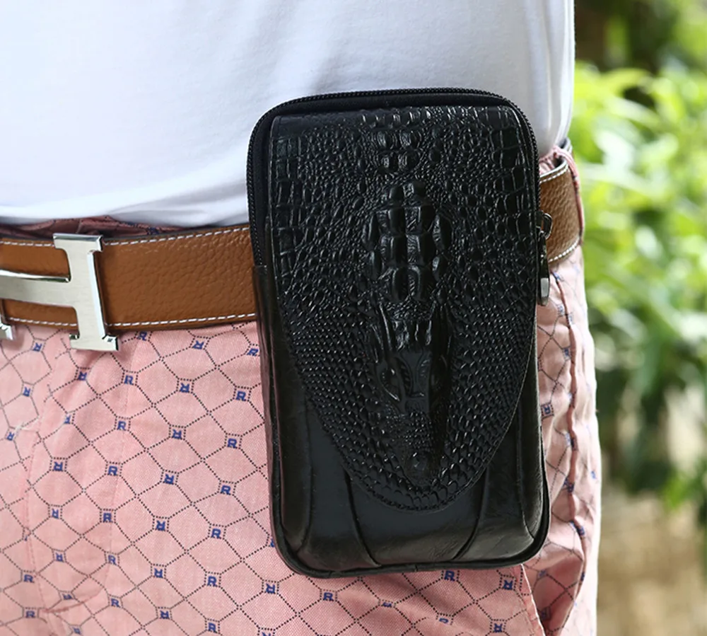 Поясная Сумка из натуральной кожи крокодиловой кожи, с карманами кожух, чехол для мобильного телефона