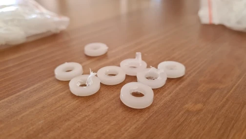 Шайбы изготовлены из жесткого пластика и имеют сырое покрытие. Большинство из них имеют пластиковые слезы и остатки от производственного процесса. (фото прилагаются) В одной сумке 99 штук. Я не оценил другого. Оставлю дополнительный отзыв, когда получу их в действии.