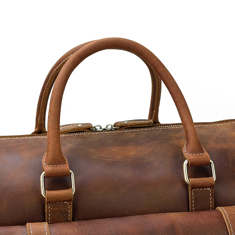 Мужская Дорожная Спортивная Сумка из натуральной кожи с карманом для обуви, 20 дюймов, настоящая кожаная сумка для выходных, винтажная кожаная сумка-мессенджер Crazy Horse