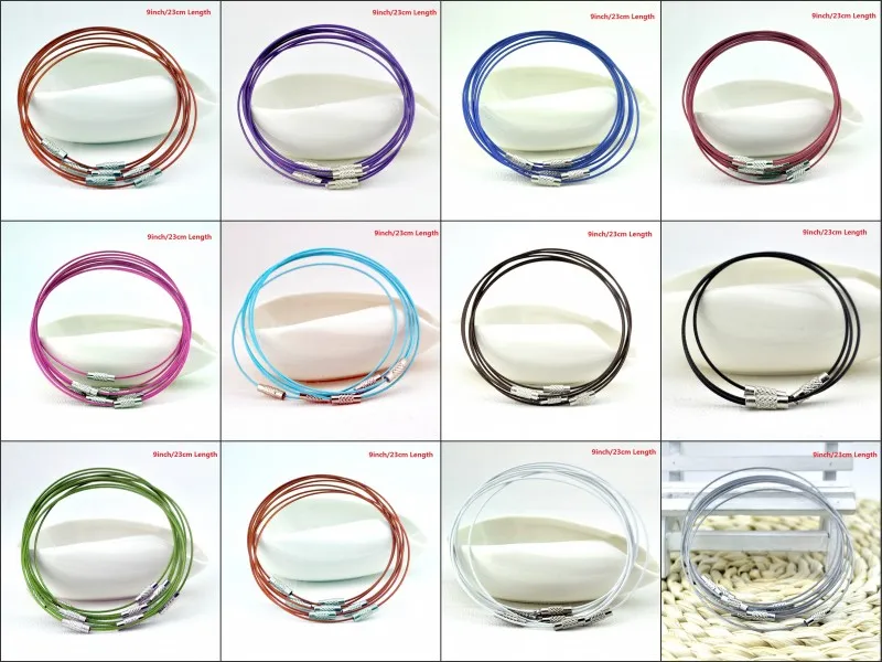 Оптовая продажа 50 шт./лот 12 цветов 1 мм браслет из нержавеющей стали проволочный шнур для DIY Craft Jewelry Длина 9 дюймов 23 см Бесплатная доставка