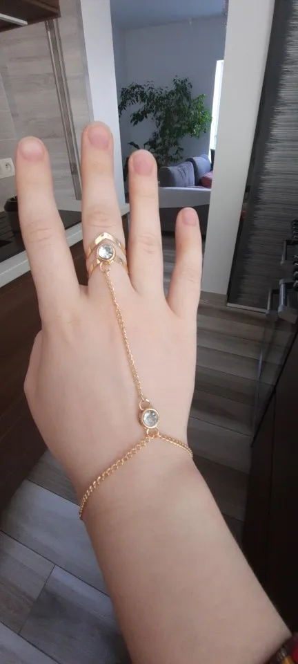 Изделие:Браслет кольцо Материал:Сплав Цвет:Золото Размер:Длина цепочки: 17 + 5 см. Диаметр кольца: 2 см. Ширина кольца: 1,5 см Повод:Юбилей, свидание, подарок, вечерние... Посылка входит:1 шт. браслет (как показано на рисунке) Примечание:Из-за различных партий продукции и неизбежной разницы в настройках мониторов цвета, показанные на фотографии, могут не на 100% соответствовать цветам на изделиях.