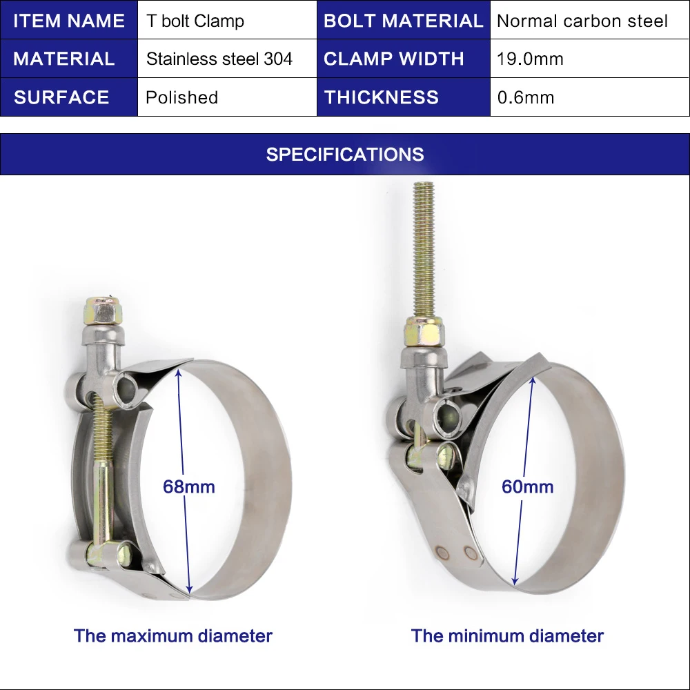 Температура Выдерживает номинальную температуру:-От 65F до 500F Номинальное давление:120-275 фунтов на квадратный дюйм Применение:Универсальный продукт! Идеально подходит для DIY турбо, интеркулер, впускное, турбо зарядное устройство проектов! В комплект входит:2 шт Т болт зажим