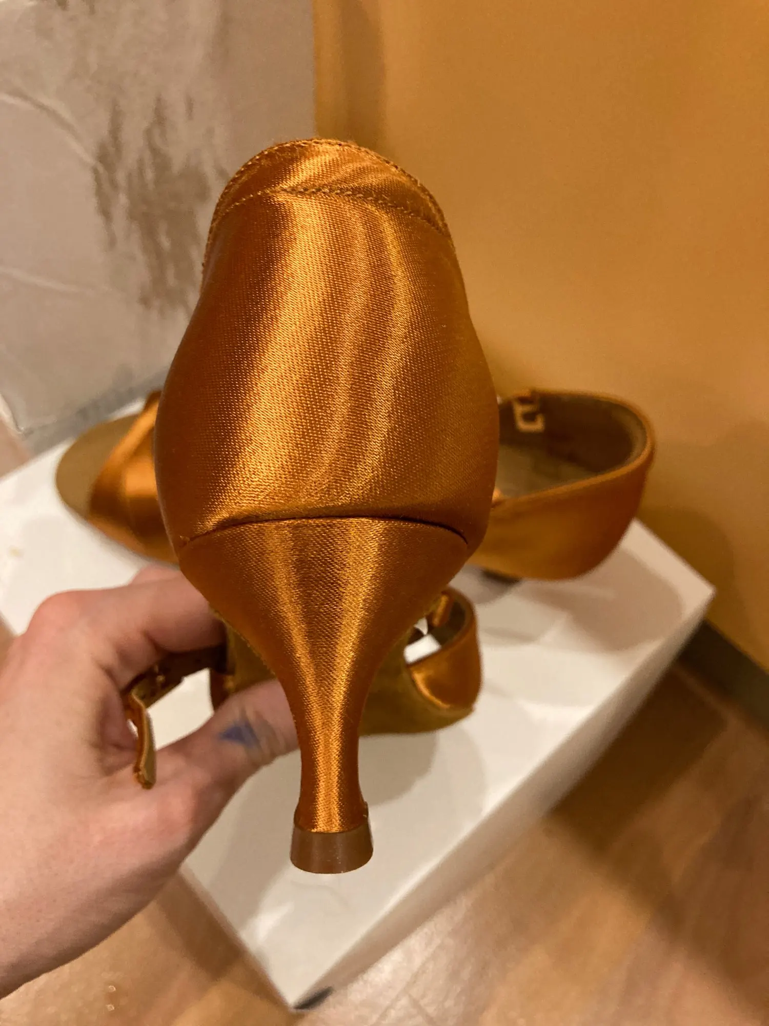 Размер совпадает с размерной сеткой, удобные и красивые, но для меня немного плосковатые. в латине везде нужно тянуть стопу, и вот в этот момент туфли от ноги отделяются, а хотелось бы, чтоб повторяли форму стопы.