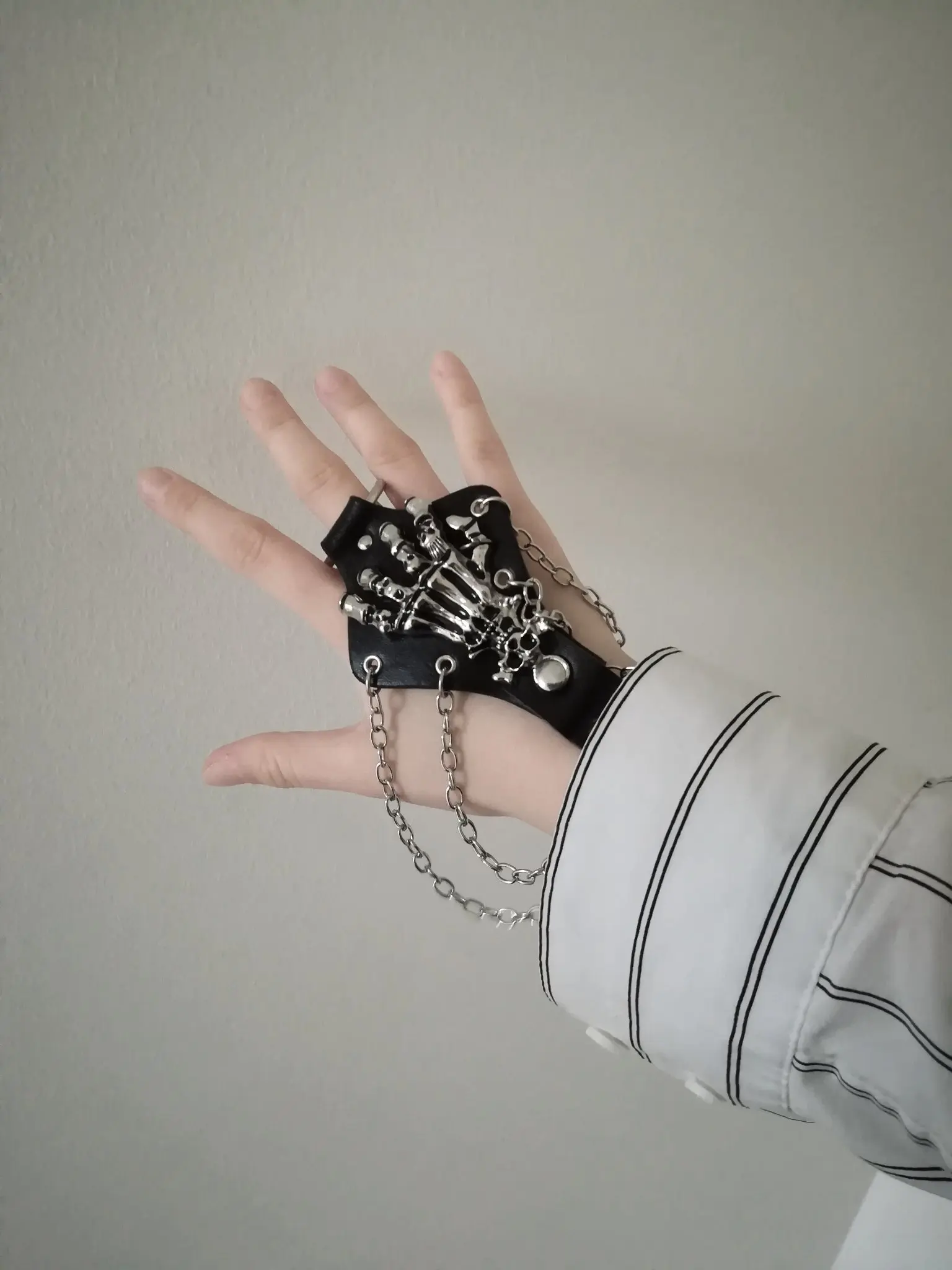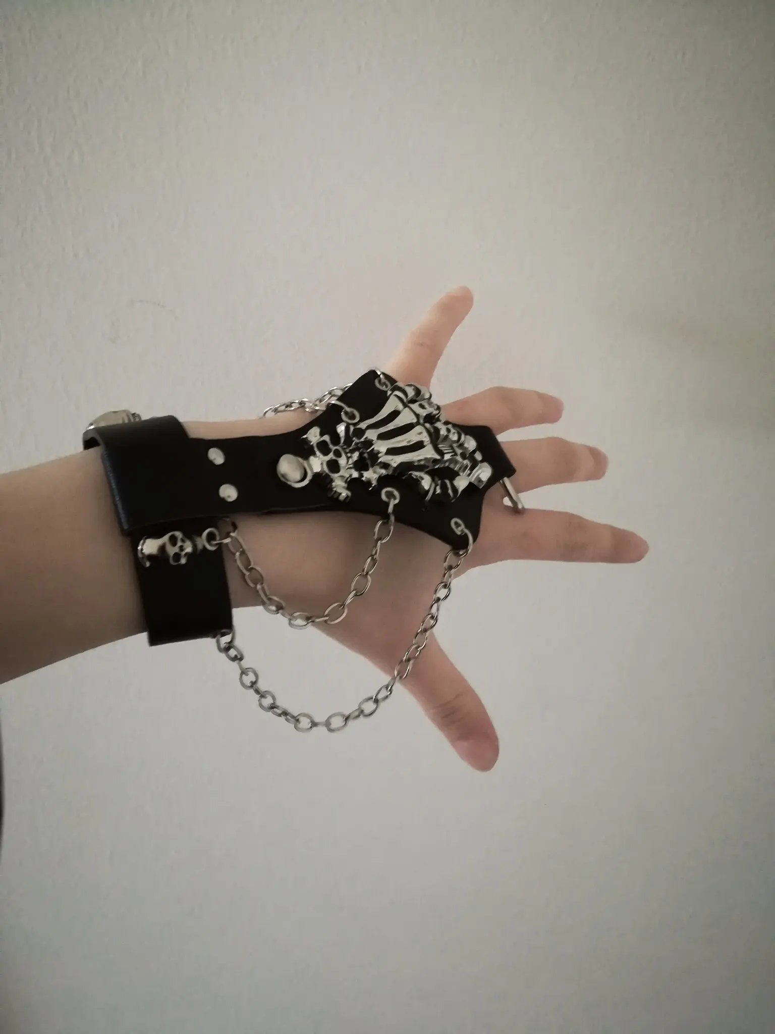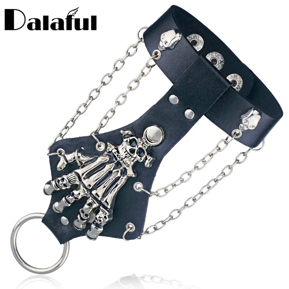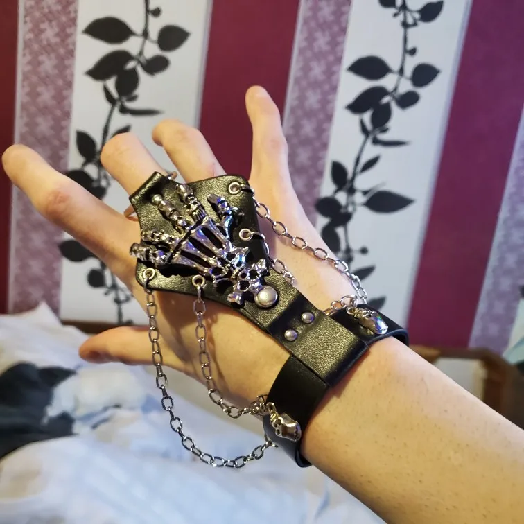 Кожаный браслет унисекс в стиле панк-рок череп готического скелета, цепь с перчаткой звеньев, S244