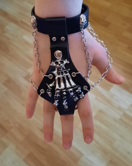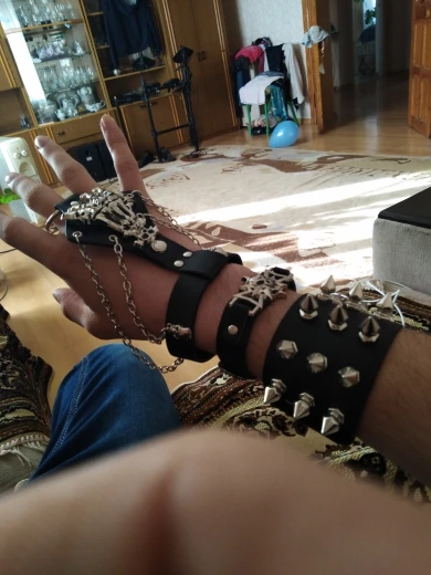 Получил посылку вместе с парой других товаров от того же продавца. Аккуратная, отдельная упаковка. Я заказал два, по одному для каждой руки. Я думаю, что доставка займет немного больше месяца. Материал, из которого он сделан, немного прочнее, чем я ожидал. Он немного слишком свободный для моих запястья, но, по крайней мере, он остается на месте. Кольцо, которое проходит вокруг пальца, также немного великовато и не самое удобное, а так как часть браслета расстегивается вокруг моего запястья, оно слегка скользит вниз. Скорее всего, это не проблема для больших рук... Так что на мне выглядит немного неудобно, но это не слишком плохо. Выглядит круто. Я очень доволен. Хороший продукт, учитывая низкую цену. Посмотрите, как он себя чувствует при ношении в течение более длительного периода времени. Я рекомендую этот товар и его продавец! :o)