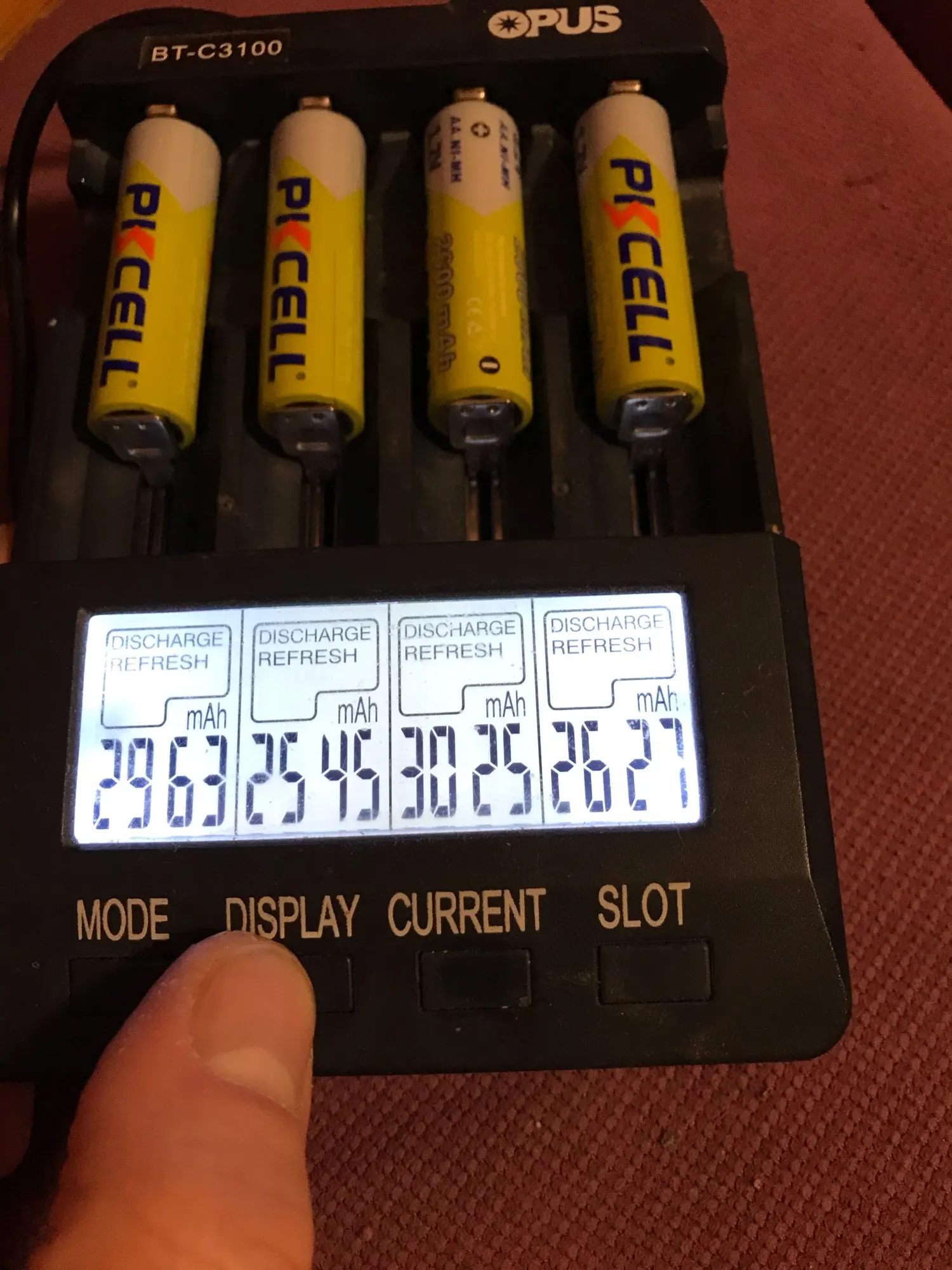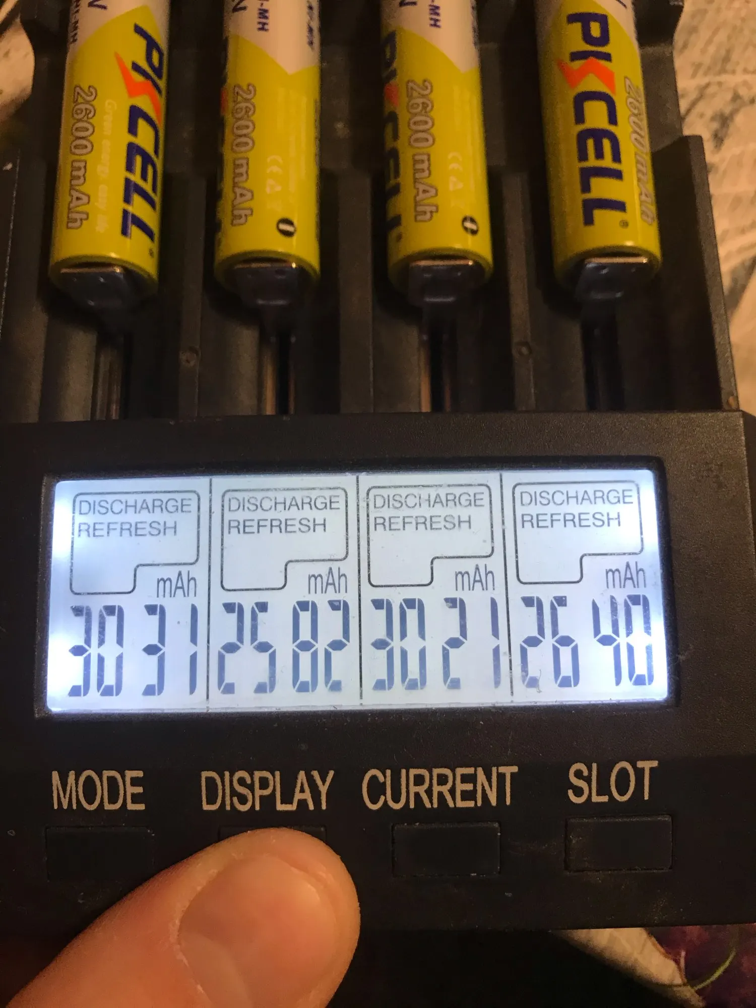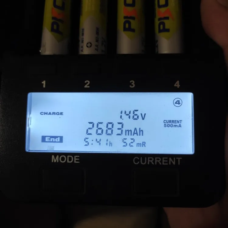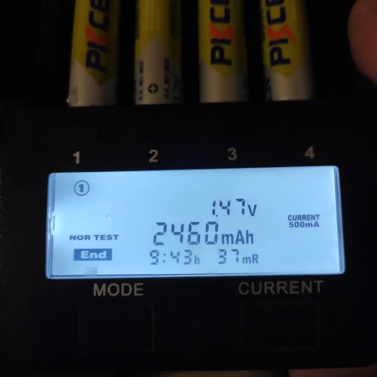 Купил я в общей сложности три комплекта. У всех напряжение выше написанного (1.3-1.4 В). Ёмкость тоже отличается от написанной. 4 аккумулятора перескочили 3000 мАч, 3 немного не дотянули до 2600 мАч, остальные между этими показаниями. Всё на фото. Аккумы ставил на refresh, зарядка гоняла каждый комплект около 40 часов.