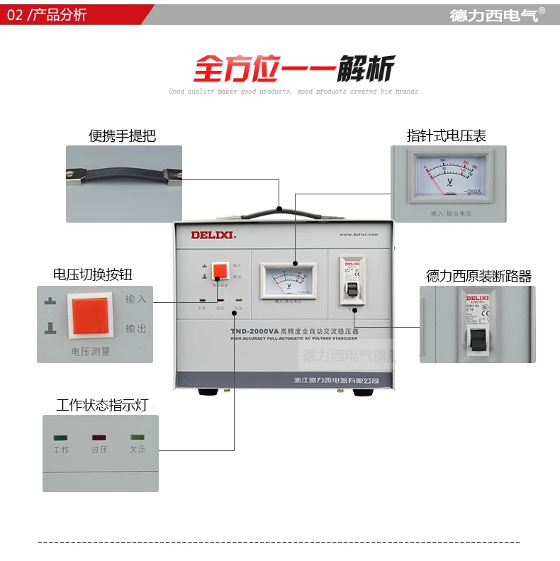 DELIXI TND 2kva однофазный стабилизатор напряжения переменного тока автоматический стабилизатор напряженияДвойной выход 110 В и 220 ВВысокая эффективностьУправление серводвигателемISO,CE,CCC,IECСтабильный