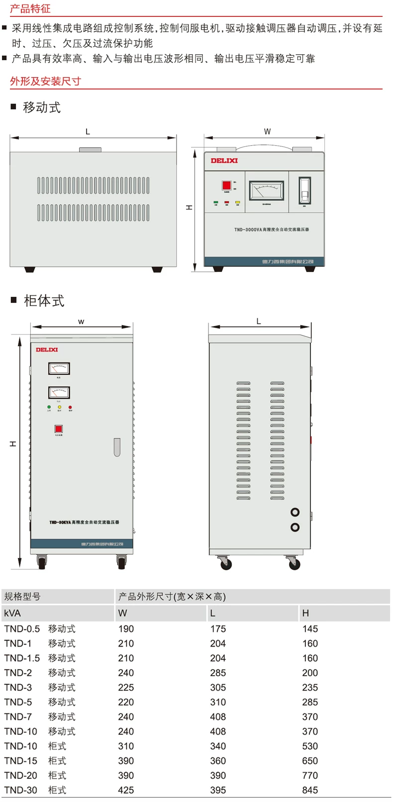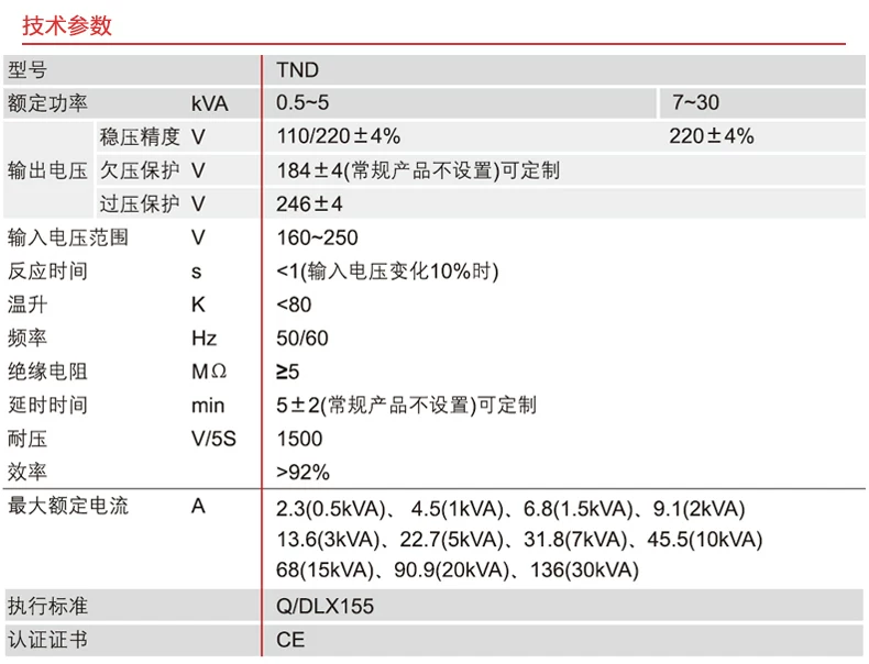 Технические параметры высокоточного полностью автоматического стабилизатора напряжения переменного тока серии TND: