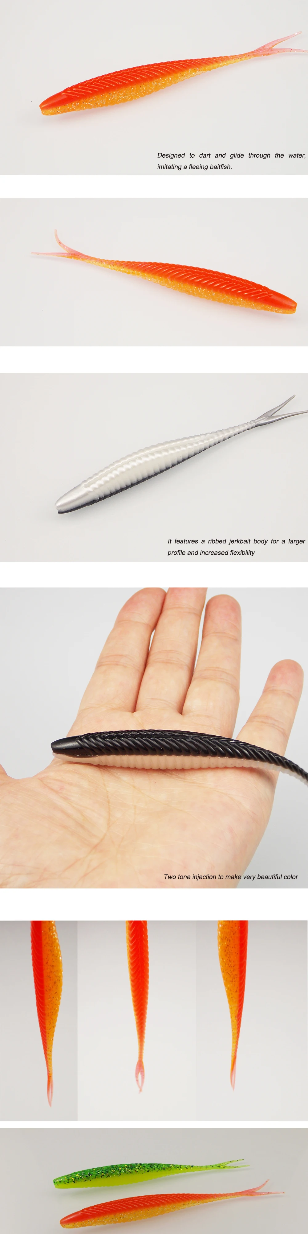 На ощупь мягкие и красивые. В пакетике пропитка. Всё ОК. Заказывал семь разных приманок, в подарок положили упаковку (Forktail Trailer 2,4" 62mm 1,4 gr 12штук) и наклейку.
