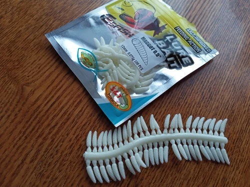Опарики как живые,силикон мягкий,все пропитаны атрактантом,пахнут сильно lays со вкусом краба)))Посветил фонариком горят зелёным цветом Цвет светонакопительный.Всем советую!!!Если будут ловить краснопёрку летом,закажу ещё разных цветов,пока прям порадовали китайцы,теперь дело за рыбой!!!