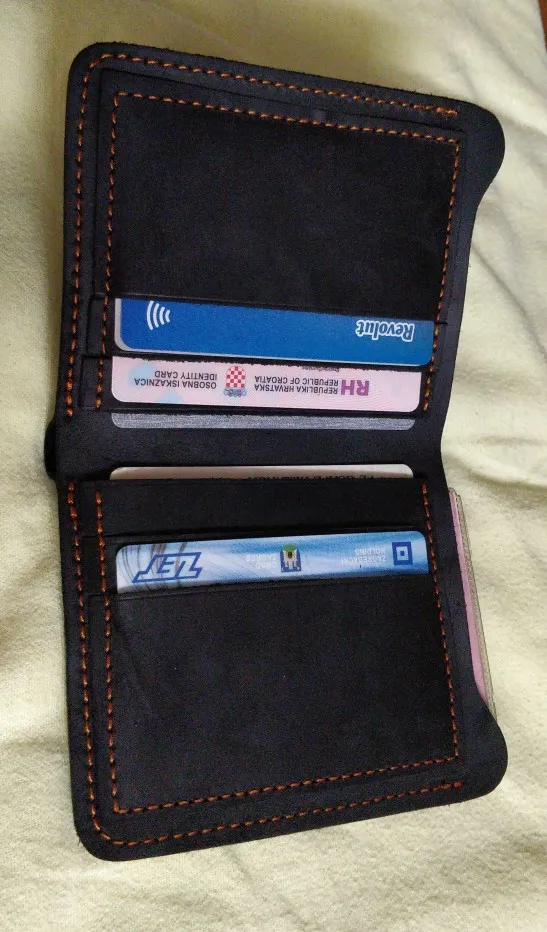 Обратите внимание, что карманы для карт очень узкие на картах или удостоверениях личности, они почти не подходят. Вы должны сжимать его в или из каждый раз, когда Я вынимаю мои карты внутрь или наружу, это SOO раздражает. Несмотря на невероятный материал и внешний вид кошелька, это бесполезно для меня, потому что я не могу использовать его ежедневно. У меня нет времени и терпения для возврата, поэтому я подарю его кому-то. Мой совет для производителя, пожалуйста, дайте дополнительный 2 мм для слотов для карт, чтобы сделать его простым в использовании.