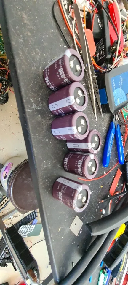 Конденсаторы низкого качества. Термоусадка вся кривая, даже высота конденсаторов у всех разная. Ёмкости от 270 до 370мкф. Esr от 80 до 400mom. В общем не понятно, что внутри и как будут работать. Заряжал 4шт. до 400в. Не взорвались))