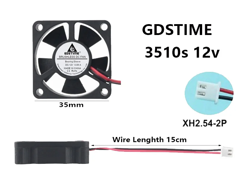 1 шт. Gdstime 3510s 35x35x10 мм Мини Бесщеточный кулер охлаждающий вентилятор DC 12 В 2 контакта 35 мм 35 мм x 10 мм