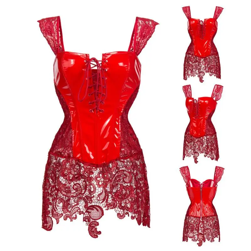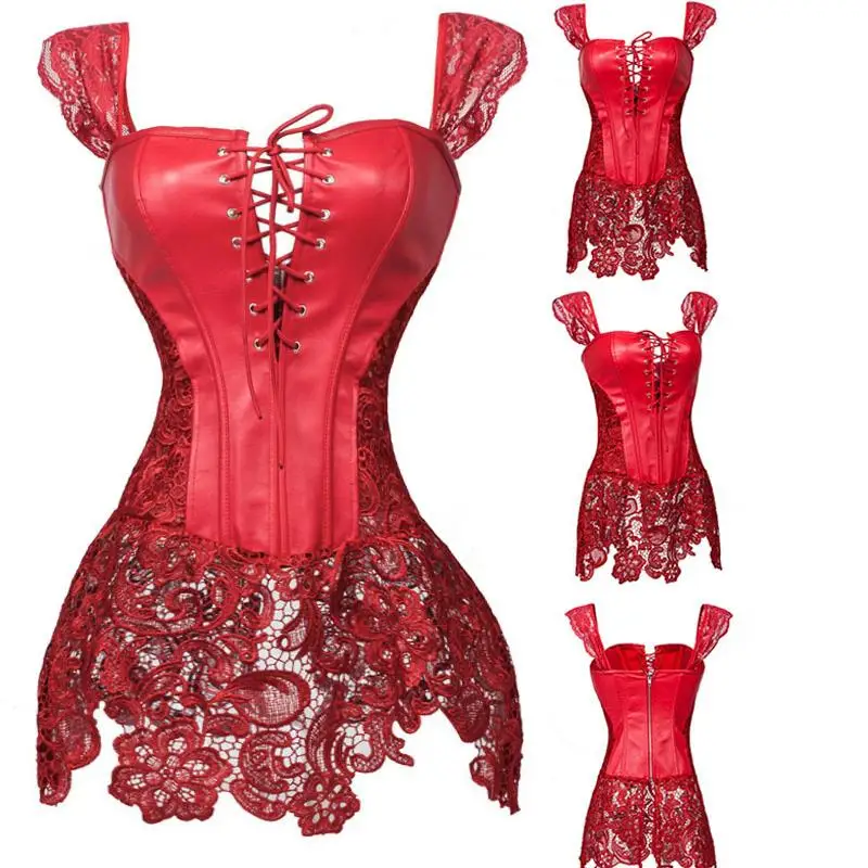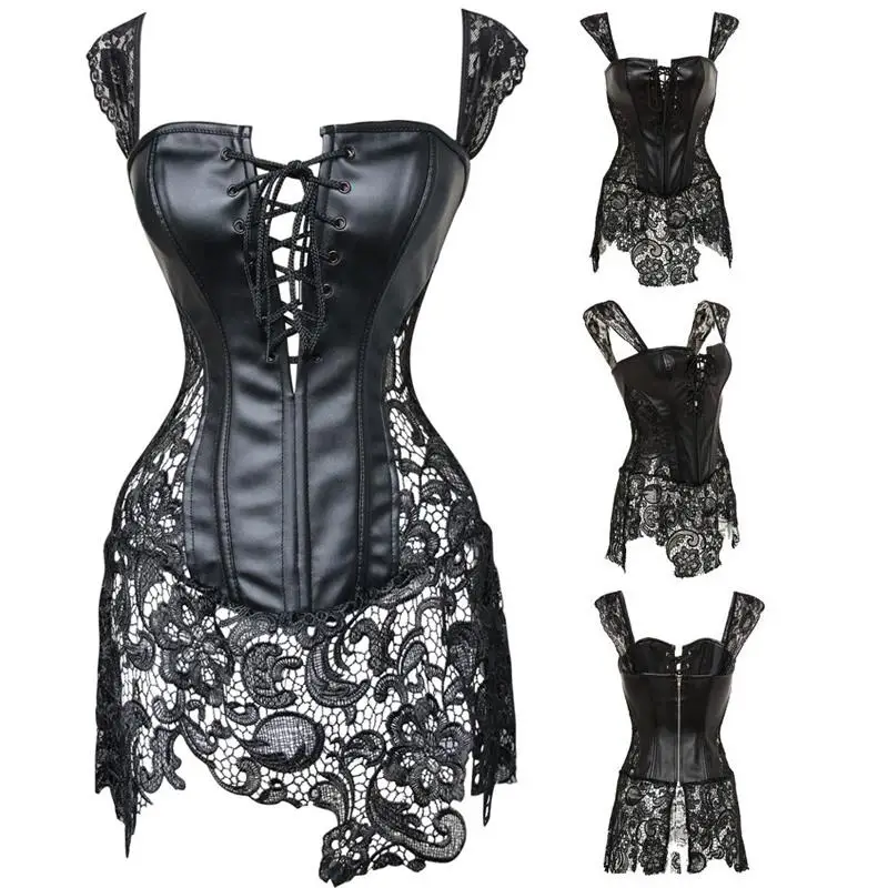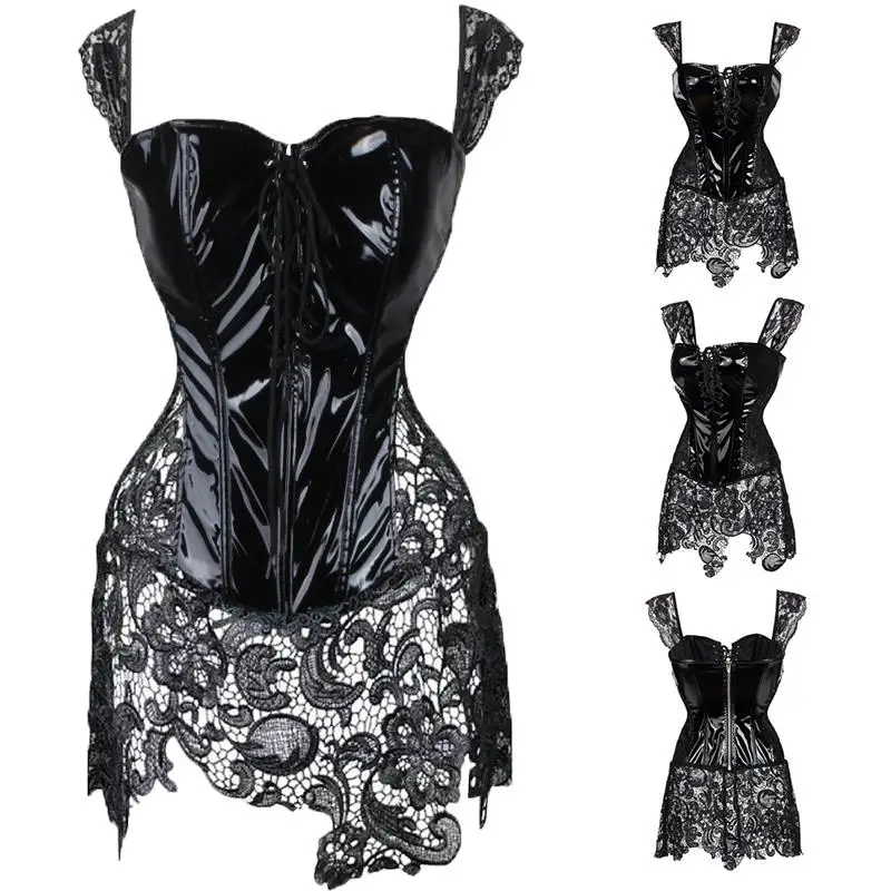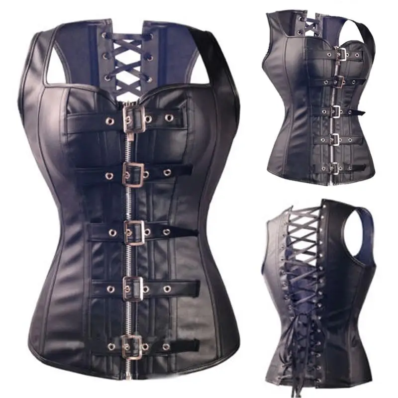 Корсет из Бюстье корсет с чашками искусственной кожи, со шнуровкой, в стиле стимпанк