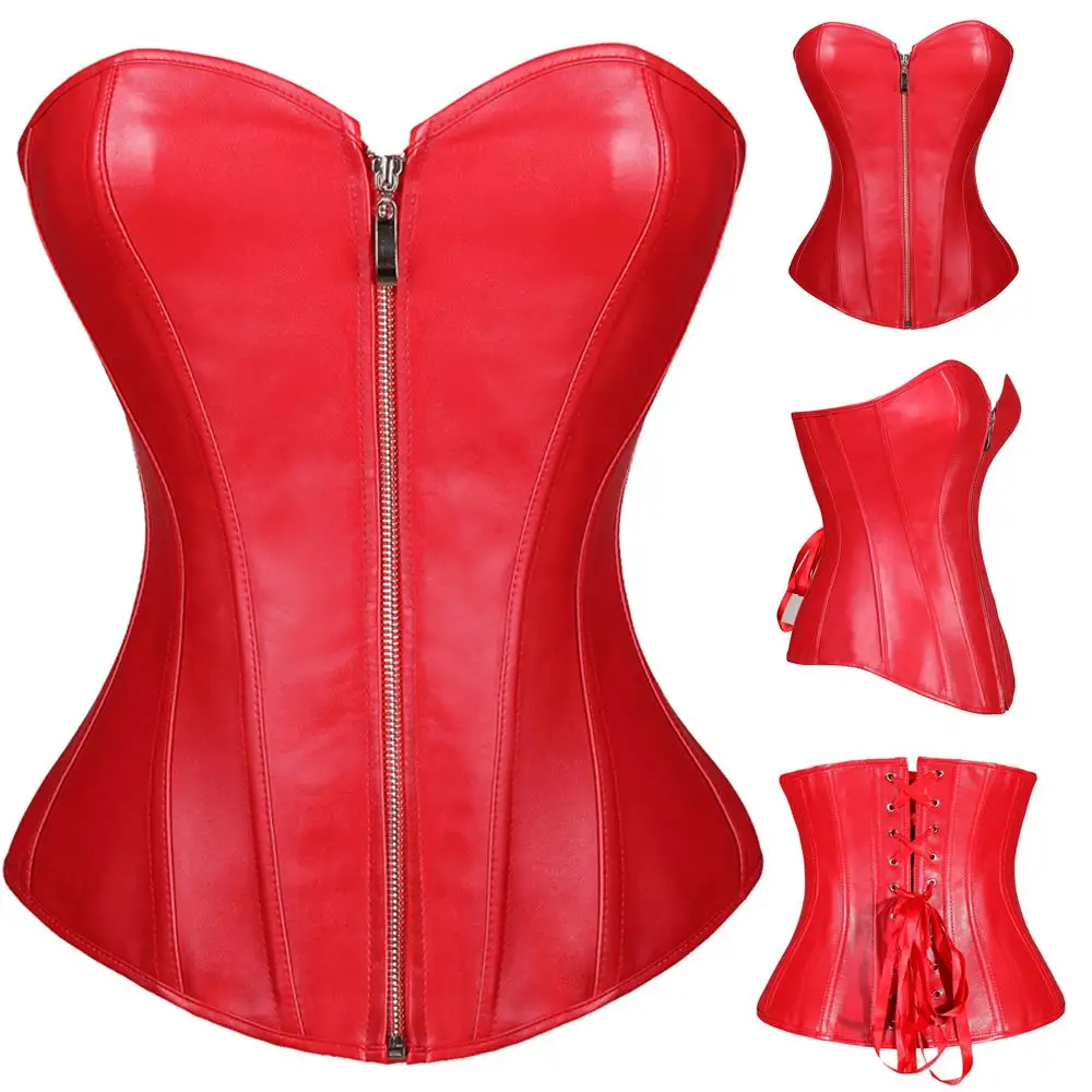 Женский корсет из искусственной кожи, черно-красный корсет в готиче...