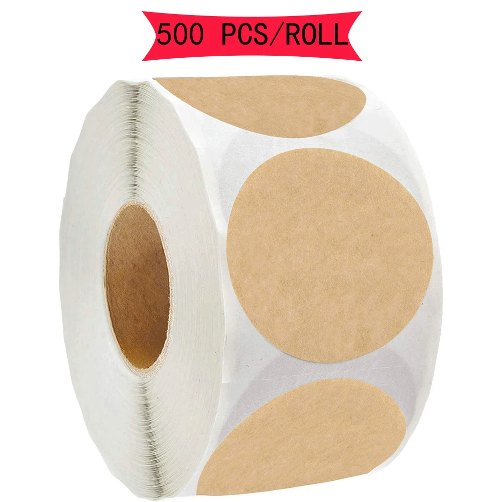 Умная наклейка, 500 шт. в рулоне, коричневая натуральная крафт-бумага, точечные наклейки, 50,8 мм, круглые, цветные этикетки для кодирования