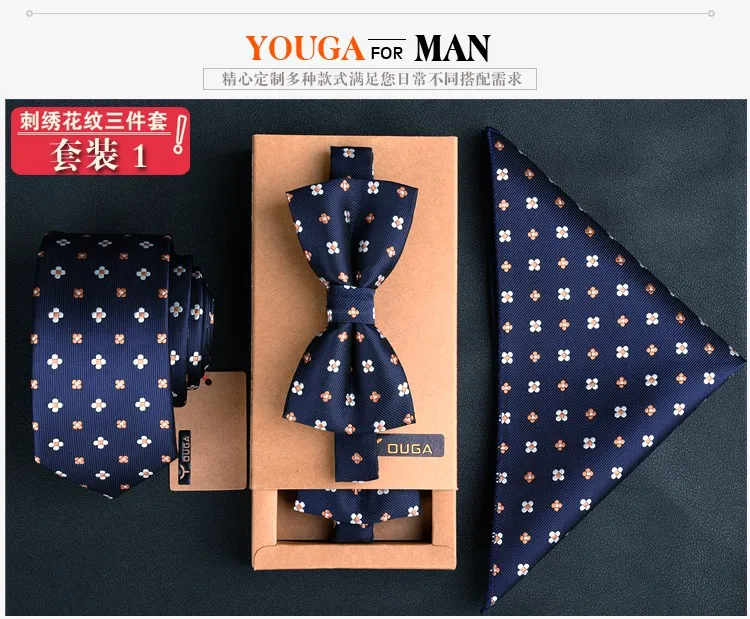 Комплект из 3 предметов для мужчин, галстук-бабочка и носовой платок, узкий галстук-бабочка, мужские галстуки