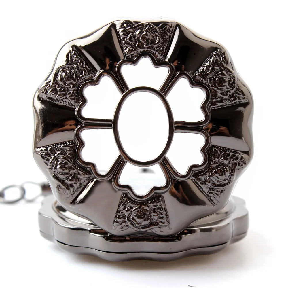 Черные полностью стальные светящиеся Механические карманные часы винтажный, с отверстиями, в стиле стимпанк аналоговые скелетоны, механические карманные часы с ручным заводом