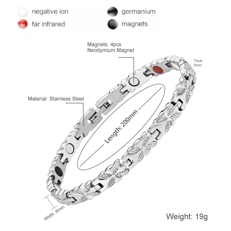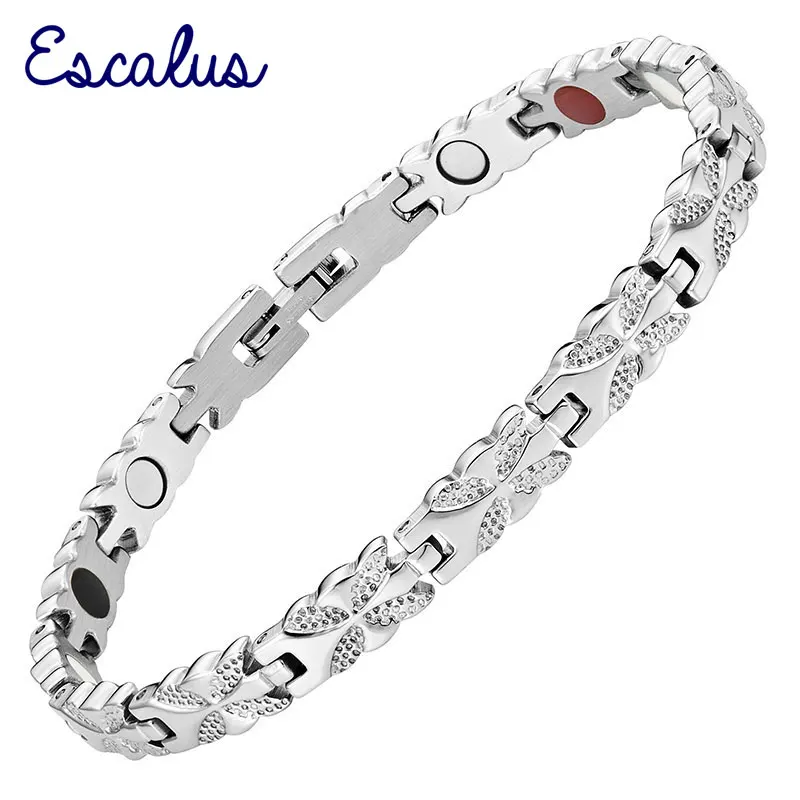 Женский браслет Escalus 4в1 с магнитами-ve ионы Германий Far Infra Красный браслет из нержавеющей стали серебряный браслет Шарм