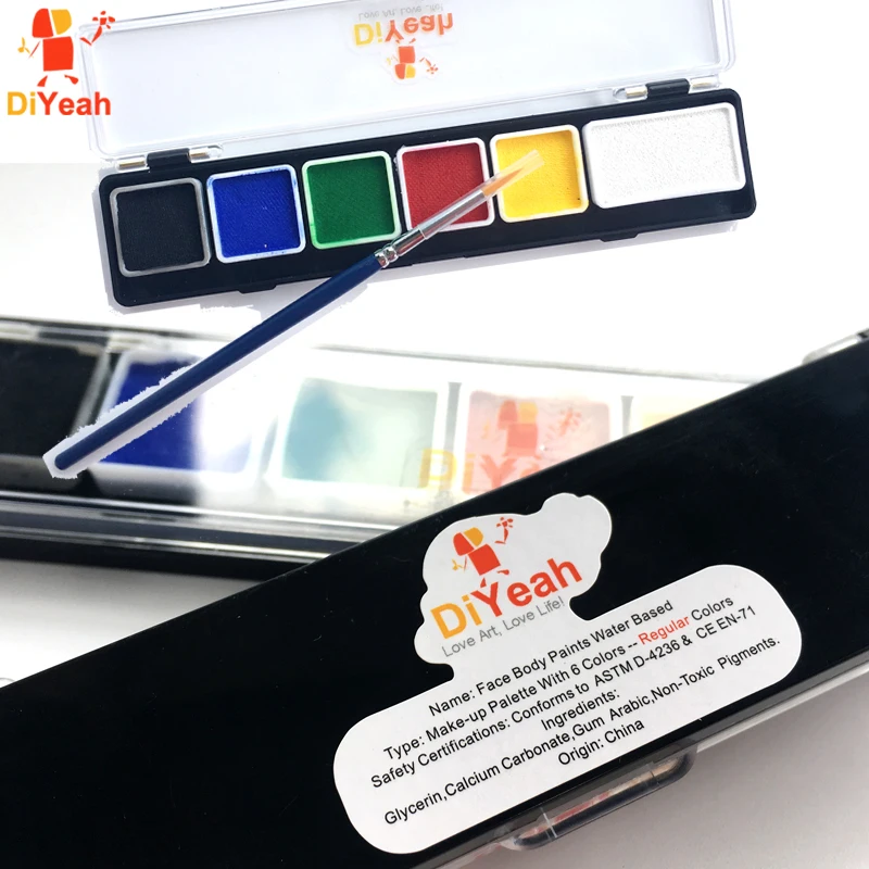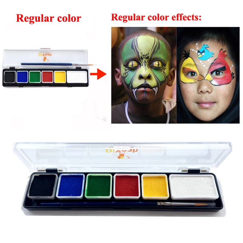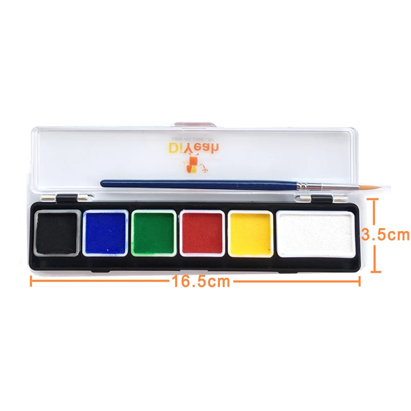 Краски для лица и тела, 6 цветов в наборе, белые, черные, красные, желтые, с кисточкой, модель краски, для временного макияжа пигмент для рождества на водной основе