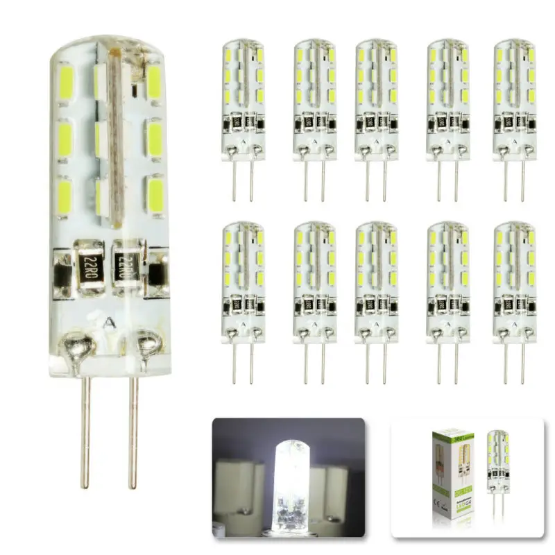 10 шт.лот G4 12 В постоянного тока 220 В переменного тока 2 Вт Светодиодная лампа 24 светодиода SMD 3014 Светодиодная лампа-кукуруза для хрустальной лампы светодиодные точечные лампы Теплый Холодный белый