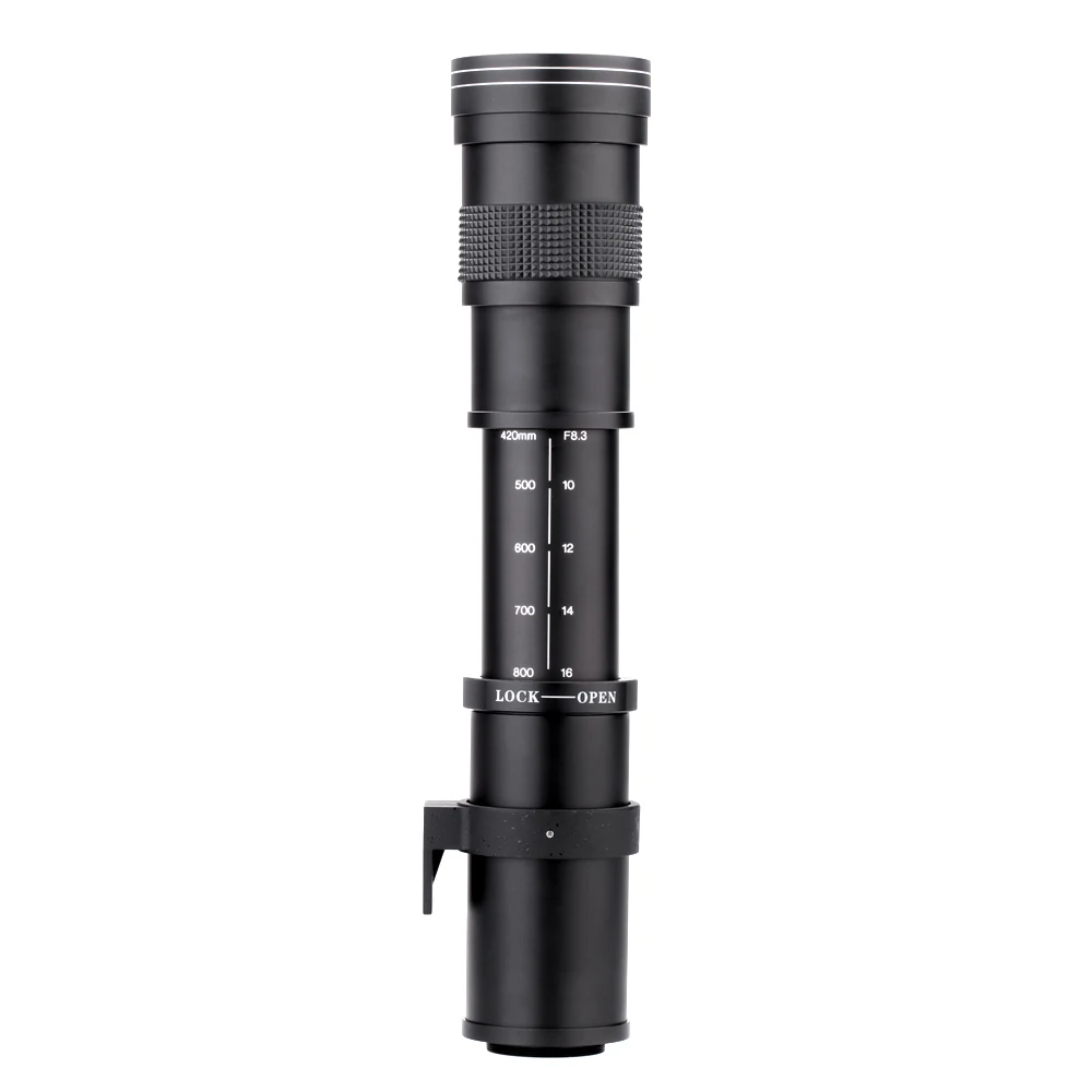 Это супер телеобъектив 420-800 мм f/8,3-16 с китайской OEM фабрики. Высокая четкость 800 мм Предустановленная телеобъектив есть и включает не только компьютерный оптический Дизайн, но также новейшие методы оптического мульти-покрытия. Процесс многослойного покрытия обеспечивает практически отсутствие бликов даже при неблагоприятных условиях Условия освещения, что приводит к четким, высоким контрастным фотографиям.