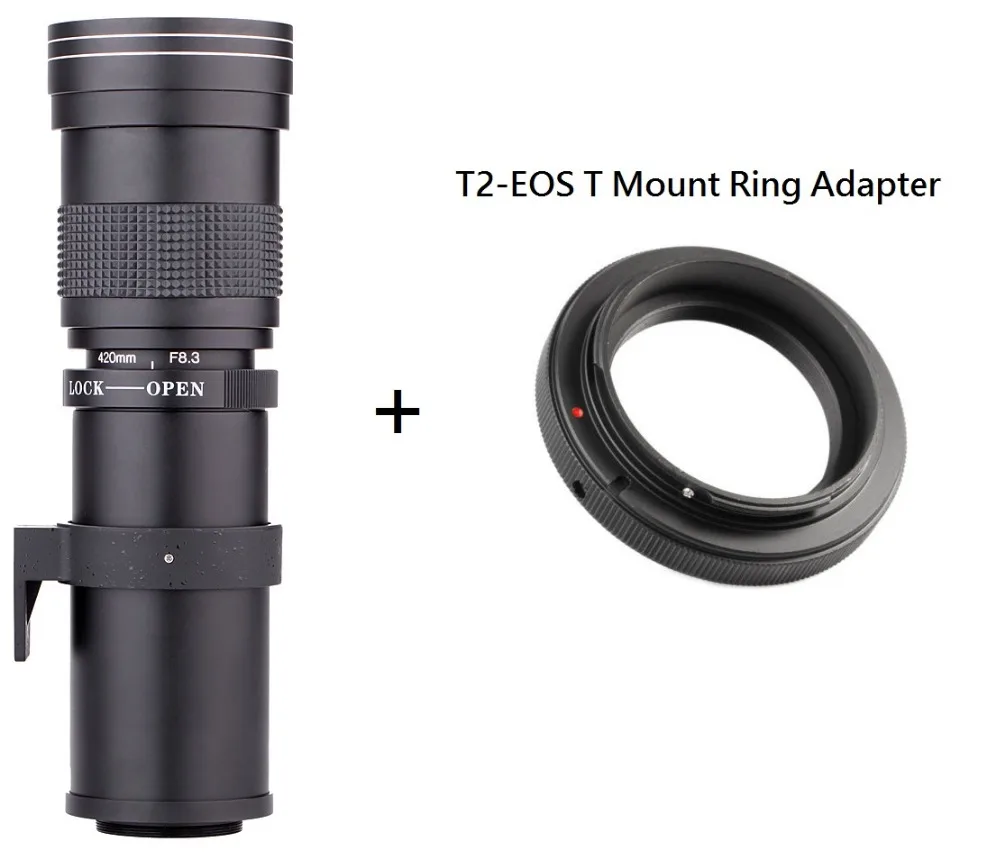 Ручной зум-объектив Lightdow 420-800 мм F8,3-16 Super Telephoto + кольцо-адаптер T2 для Canon EOS DSLR Camera EF, крепление для объектива