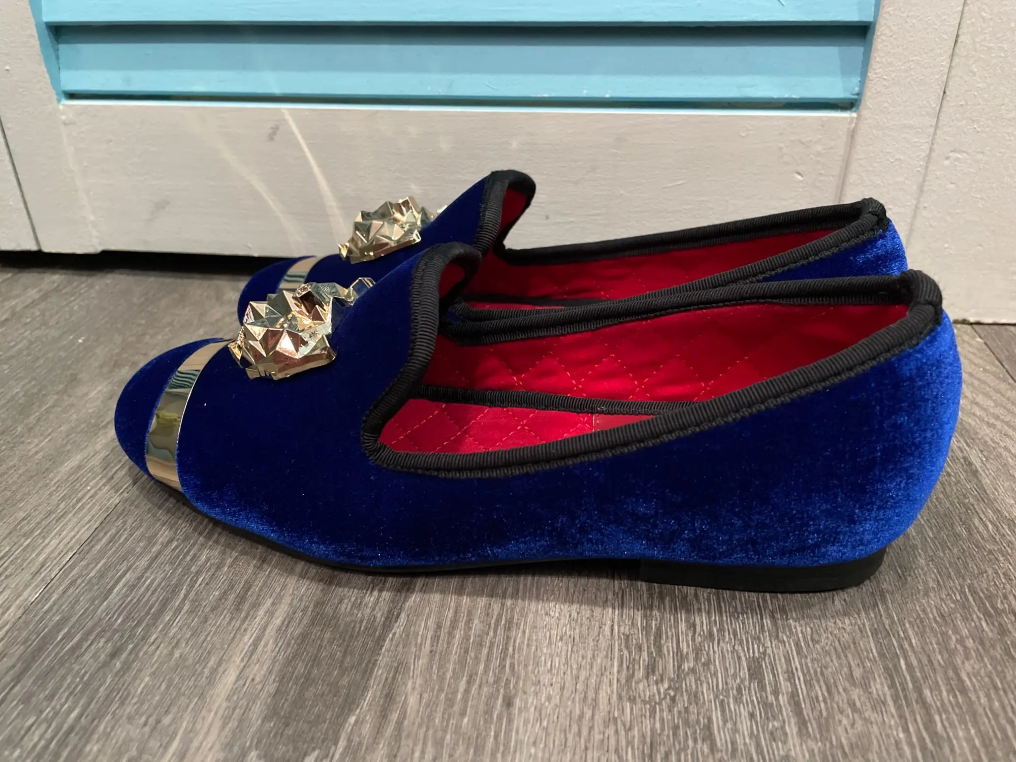 Мужские бархатные туфли ручной работы, белые и синие шитые шлепанцы...