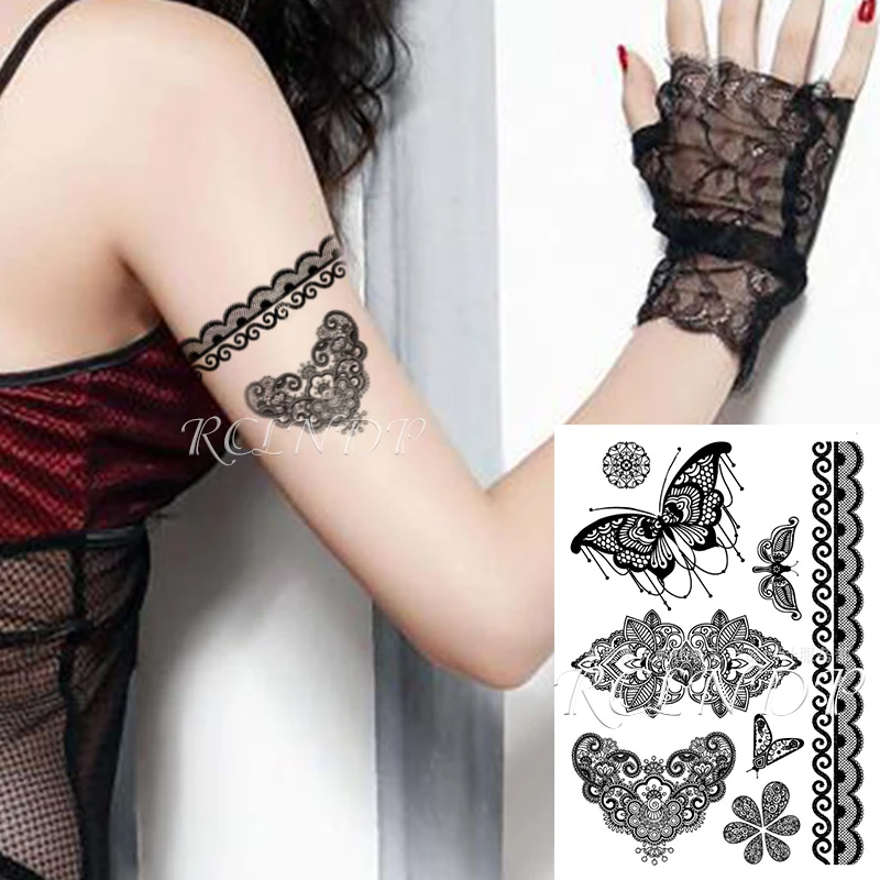 Водостойкая Временная тату-наклейка, тату, черные сексуальные кружевные чулки, Бабочка, флеш-тату, искусственная татуировка для девочек и женщин