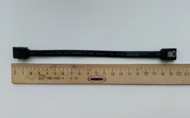 Кабель дошел за 19 дней в составе консолидированного отправления. Всё в порядке. Небольшая длина очень удобна для корпусов, где диски расположены рядом с SATA-портами на материнке и не особо предусмотрен cable management.