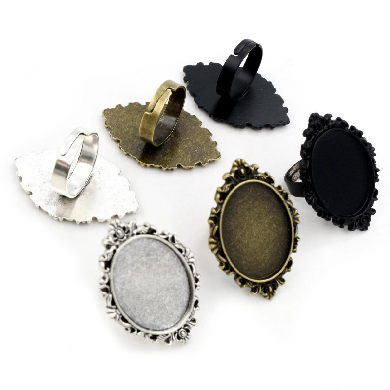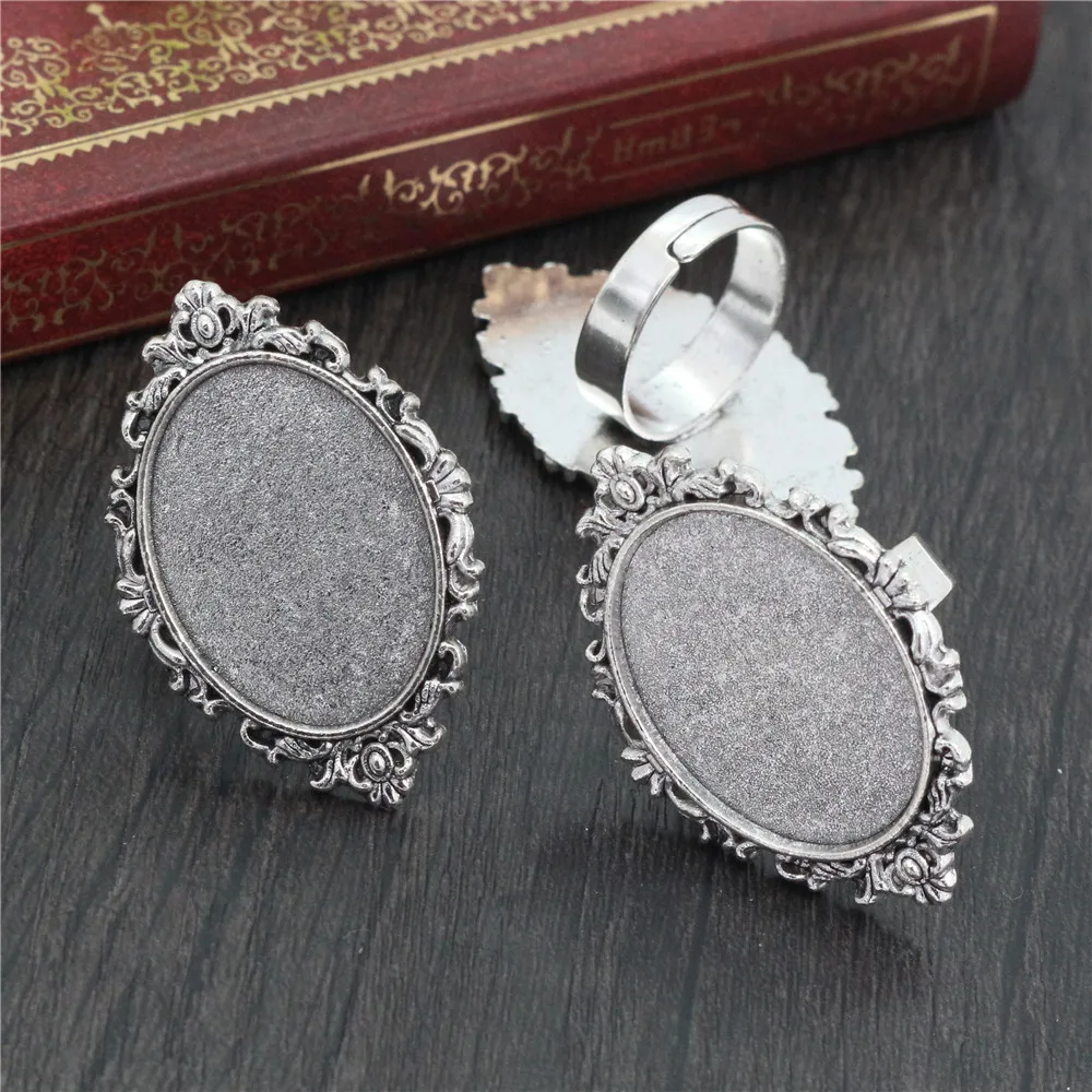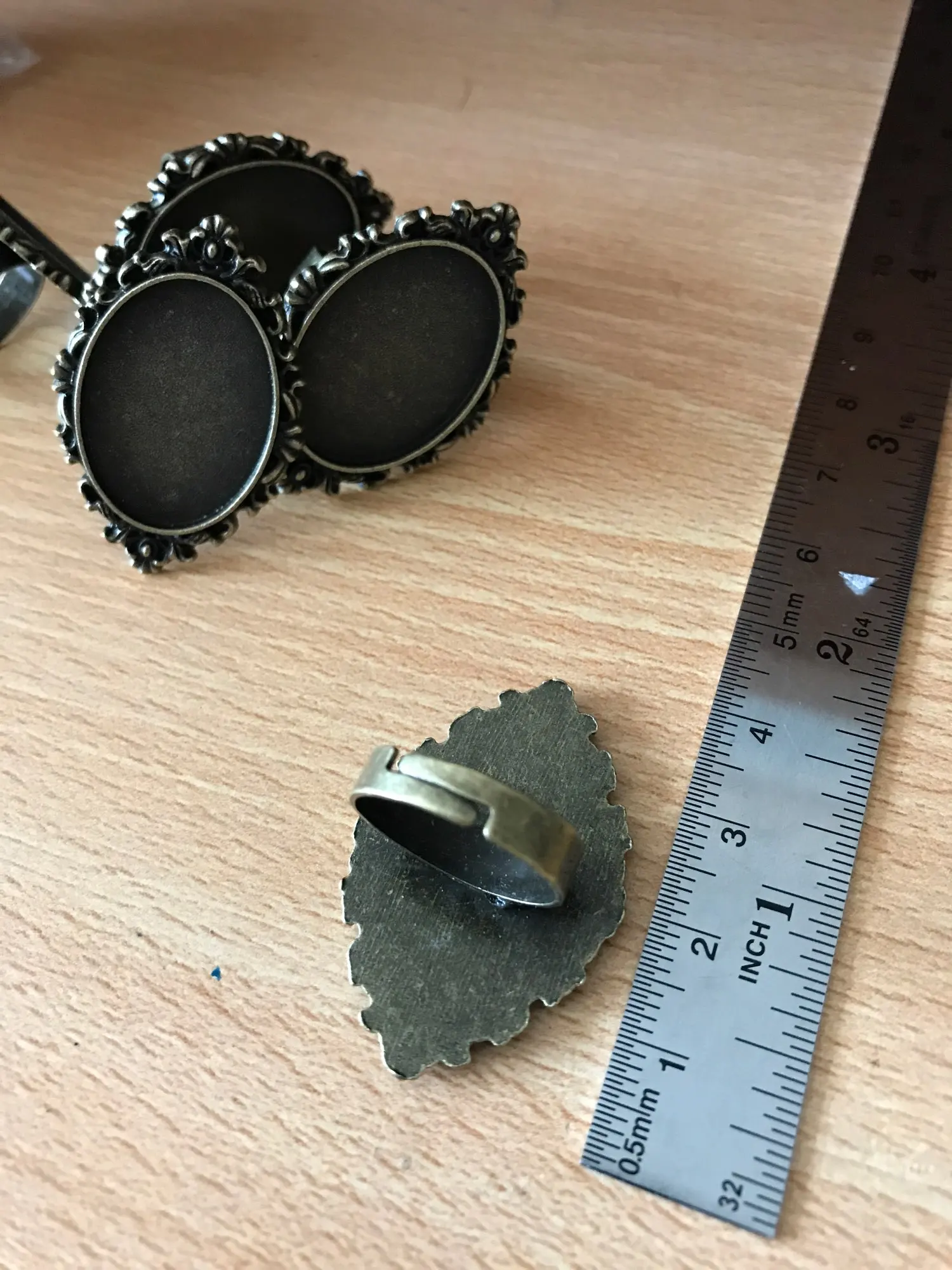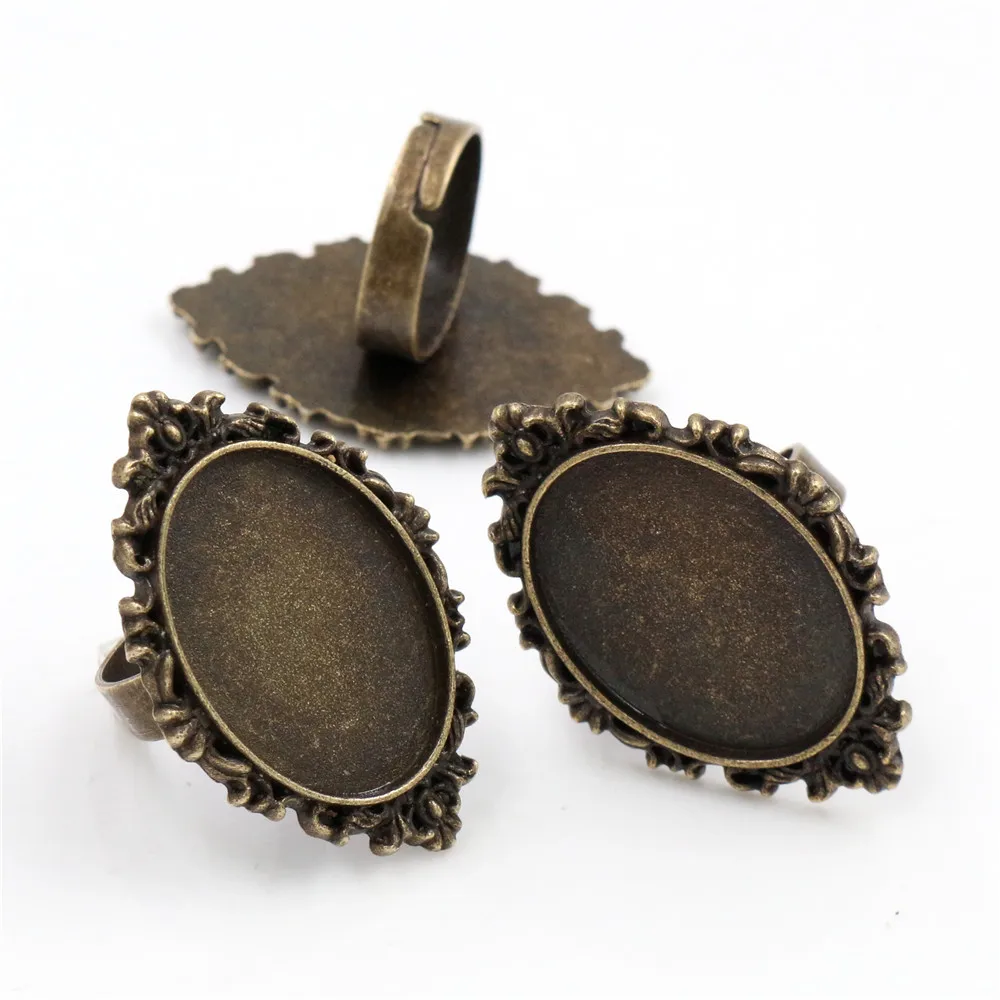 18x25 мм 5 шт античная бронза и посеребренная латунь Овальные регулируемые настройки кольца пустыеоснование, подходят 18x25 мм стеклянные кабошоны