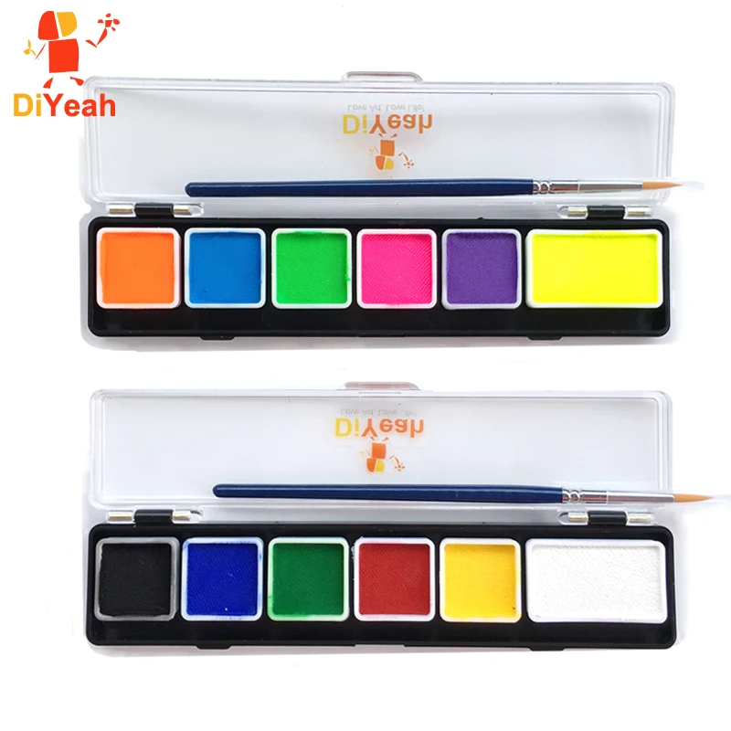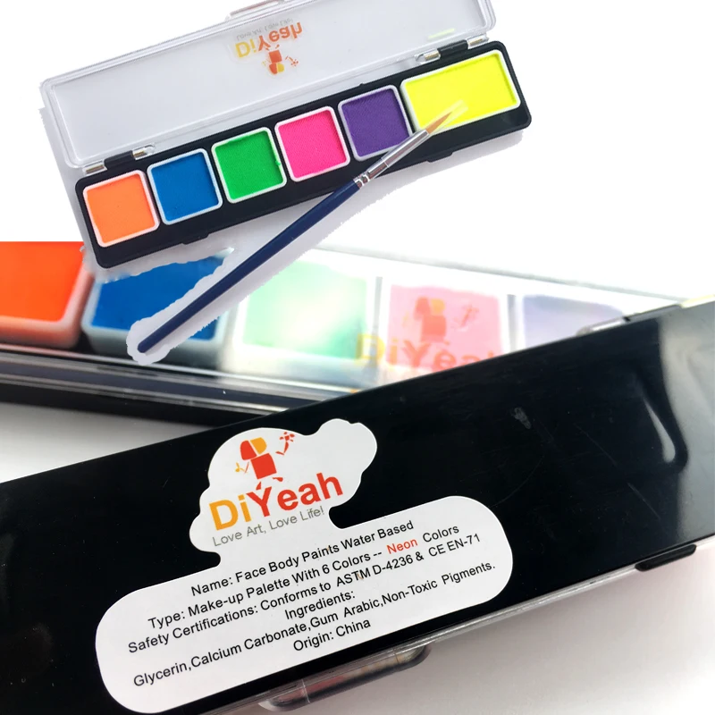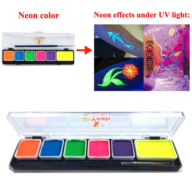 Краска для тела, 6 цветов, палитра, белая, черная, красная, модель краски, пигмент для макияжа, Рождественская флуоресцентная на водной основе, УФ-краска для лица