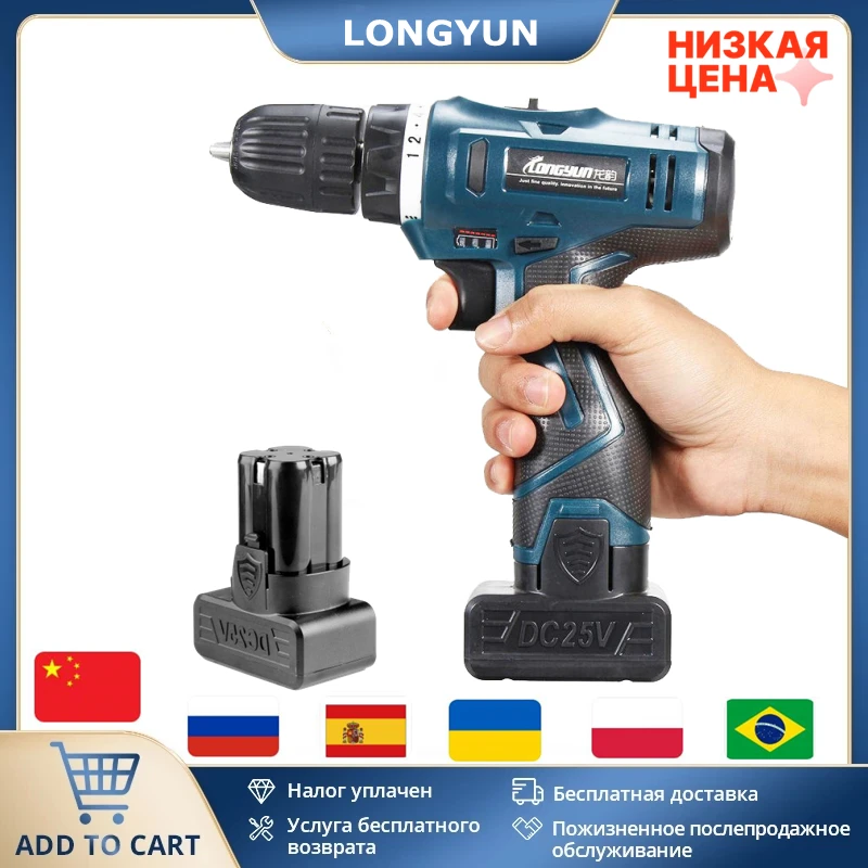 Аккумуляторная дрель шуруповерт, 25 в перезаряжаемая литиевая батарея, беспроводная отвертка, домашняя электрическая дрель, отвертка, ручные электроинструменты