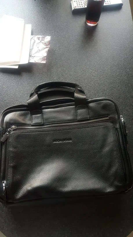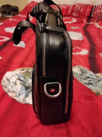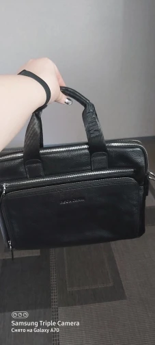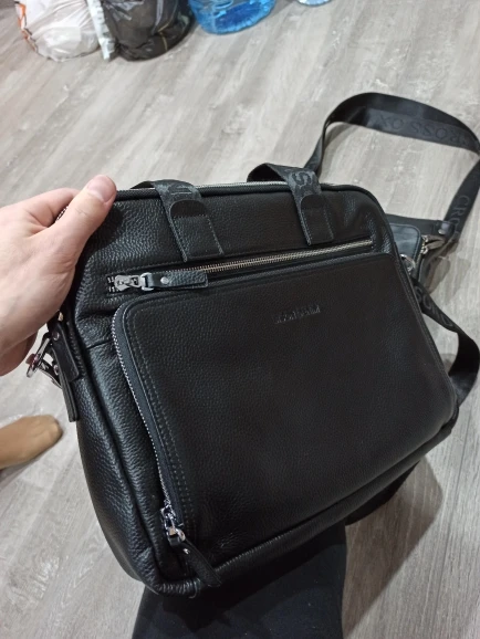 Поразительно высокое качество исполнения, приятный материал снаружи (кожа, без сомнений) и внутри, большое количество отделений и карманов на змейках и без, идеальный размер для деловой сумки-портфеля. Долго выбирал из многообразия сумок подходящую именно мне. Сумка превзошла все мои ожидания. Очень доволен покупкой, рекомендую продавца. Бонус в виде стильного кожаного кошелька дополнил приятные ощущения от приобретения. Сумка и кошелёк очень понравились жене и сыну, сидят и выбирают себе товары у данного продавца.