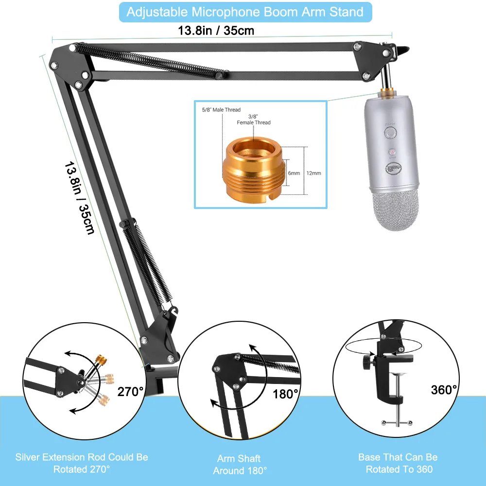 Подставка для микрофона, регулируемая подвеска, ножничная подставка для Blue Yeti Blue Snowball iCE с микрофоном, ветровое стекло, NB-35
