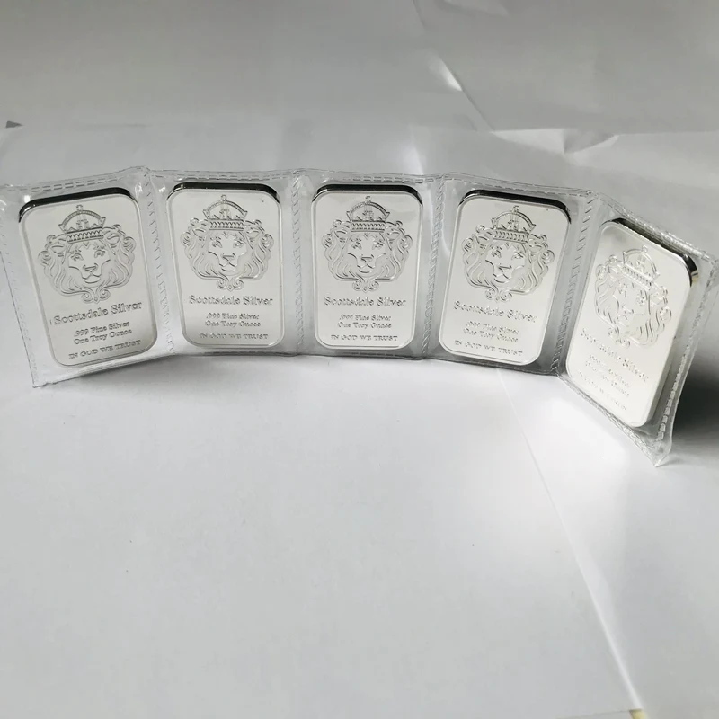 5 шт., немагнитные монеты, посеребренные, 1 унция