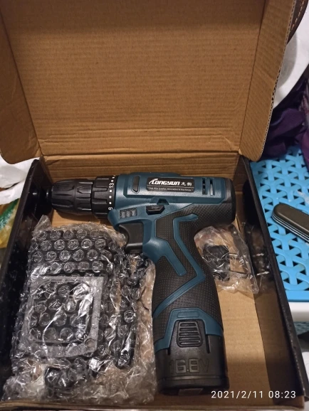 быстрая доставка с России за 2 дня в Анапу, выглядит шуруповёрт хорошо и работает пока новый хорошо, сколько прослужит не знаю, пока одни плюсы маленький, компактный и недорогой думаю хороший будет шуруповёрт.