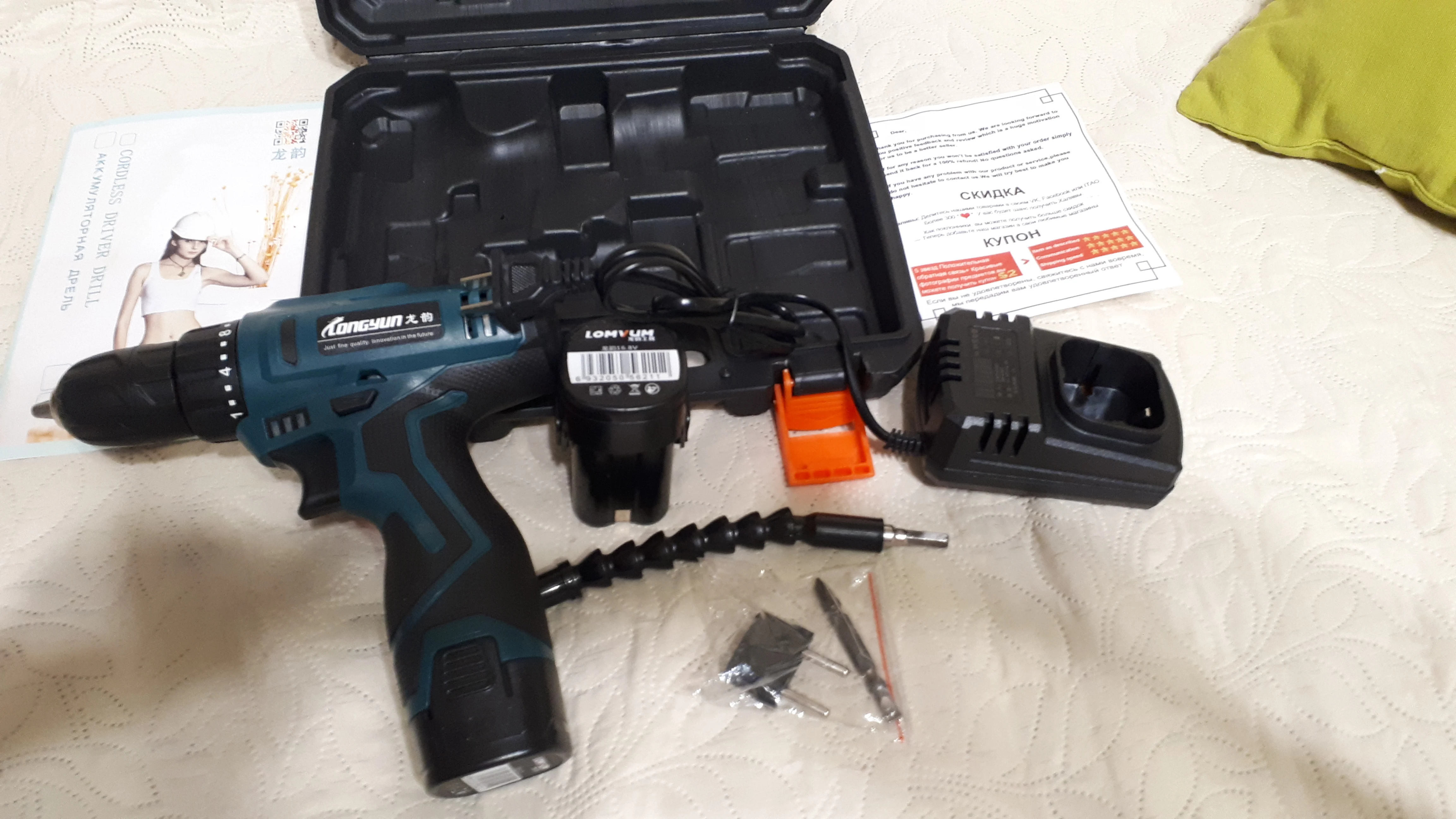 Очень быстрая доставка 6 дней. Первоначальное впечатление от шуруповерта хорошее. Аккумуляторы пришли в заряженном состоянии. Крутит бодро, удержать патрон даже на 2-ой передаче, практически невозможно. Время покажет.