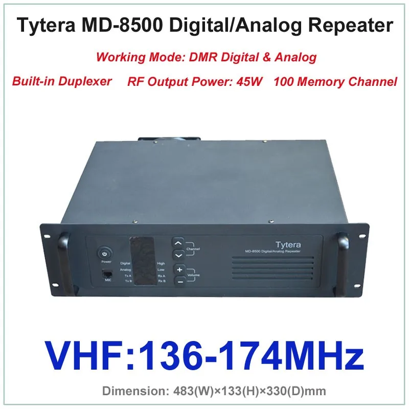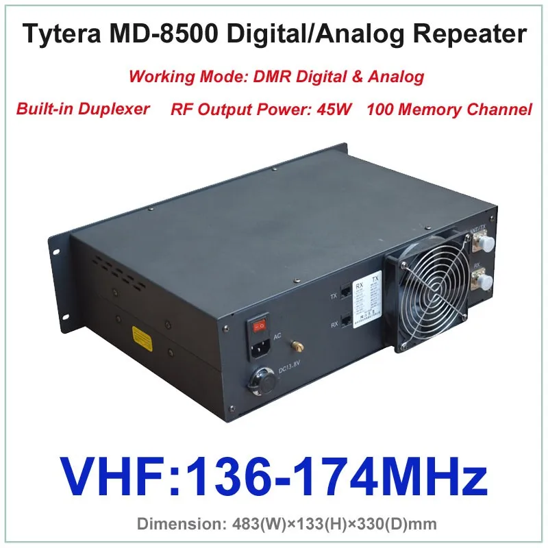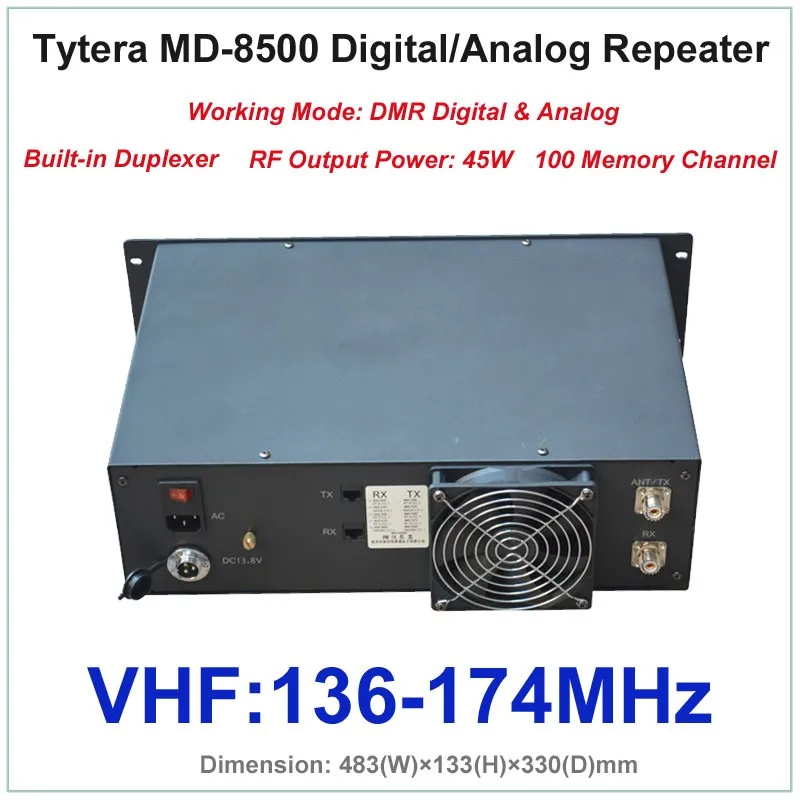 Tytera TYT MD-8500 VHF 136-174 МГц DMR цифровой и аналоговый Профессиональный иди и болтай Walkie Talkie “иди и повторитель сигнала с бесплатной Кабель для программирования и программного обеспечения (встроенный диплексер, RF Выход Мощность 45 Вт, 100 канал памяти)