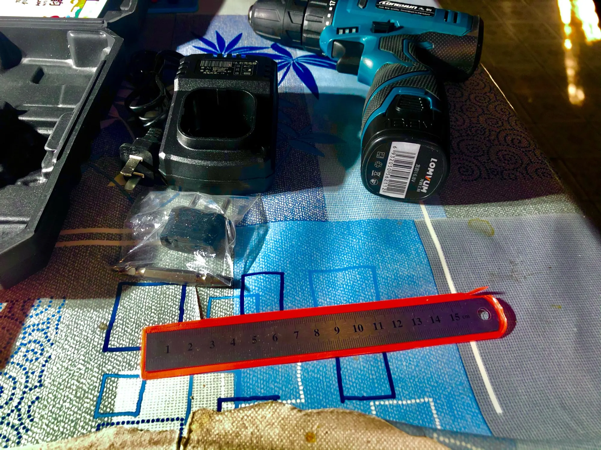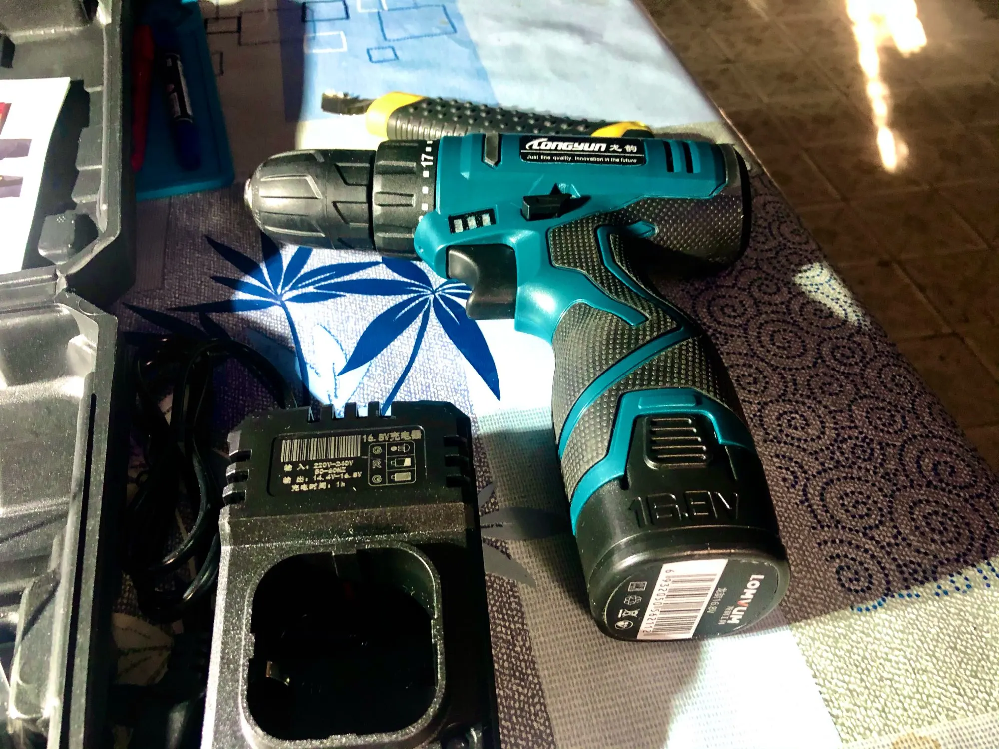 Шурик получил. Качество пластика конечно не Макита, но за свои деньги, в 2500 - ничего. Аккумуляторы, из коробки, оба показали чуть больше 16 вольт. Крутит. Люфтов нет, биений пока тоже нет, проверял на 1 мм сверле. Кнопка переключения скоростей заедает немного. Красочная инструкция на немного ломанном русском))) Ожидал, что будет побольше в размерах. Аккумуляторы при зарядке можно воткнуть в зарядное не правильно!!! Но в принципе если посмотреть, то всё понятно. Посмотрим сколько отработает)))