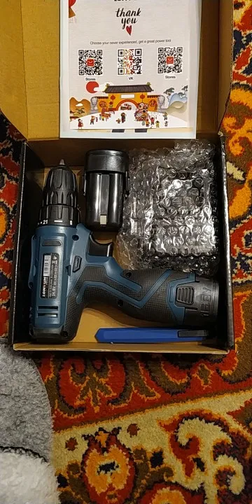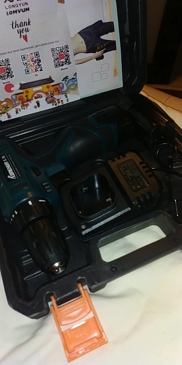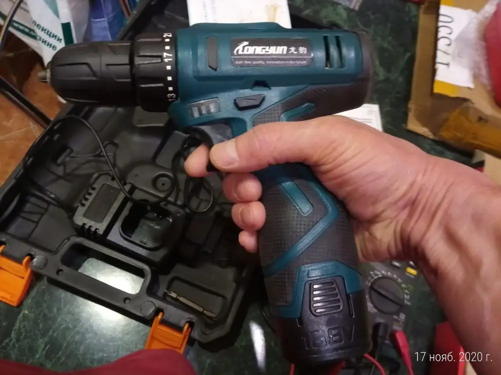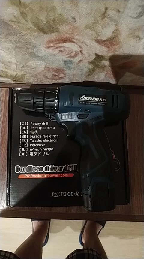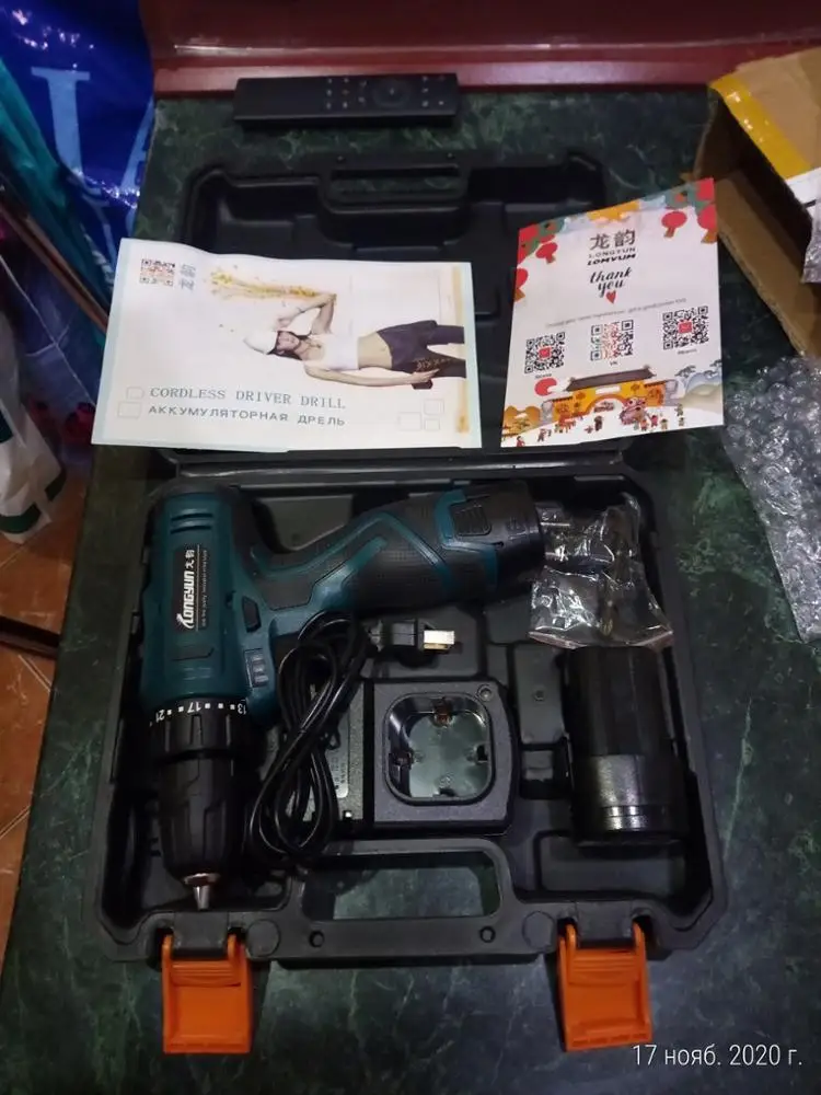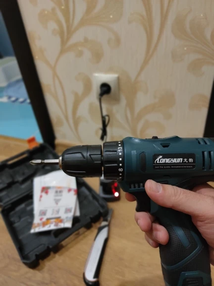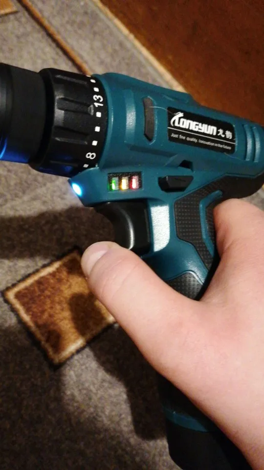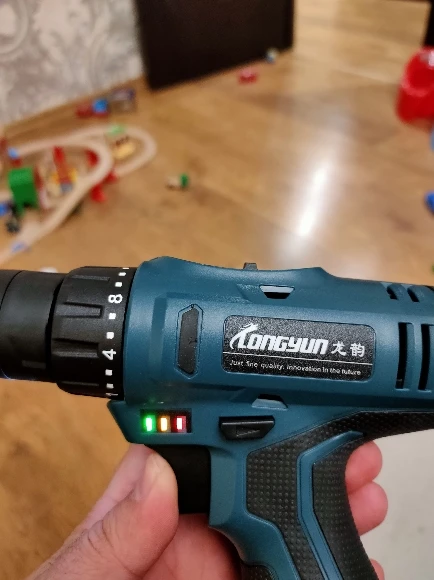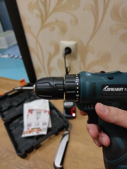 Спасибо продавцу за быструю отправку ! Пришла за 8 дней до Новороссийска! Дрель супер! Проверил , патрон без биения! Акум потом протестирую! Немного непривычно под 4 18650! У меня DEKO на 3 18650 зато реально крутящий момент чувствуется у LONGYUN гораздо мощнее! Потом проверим!