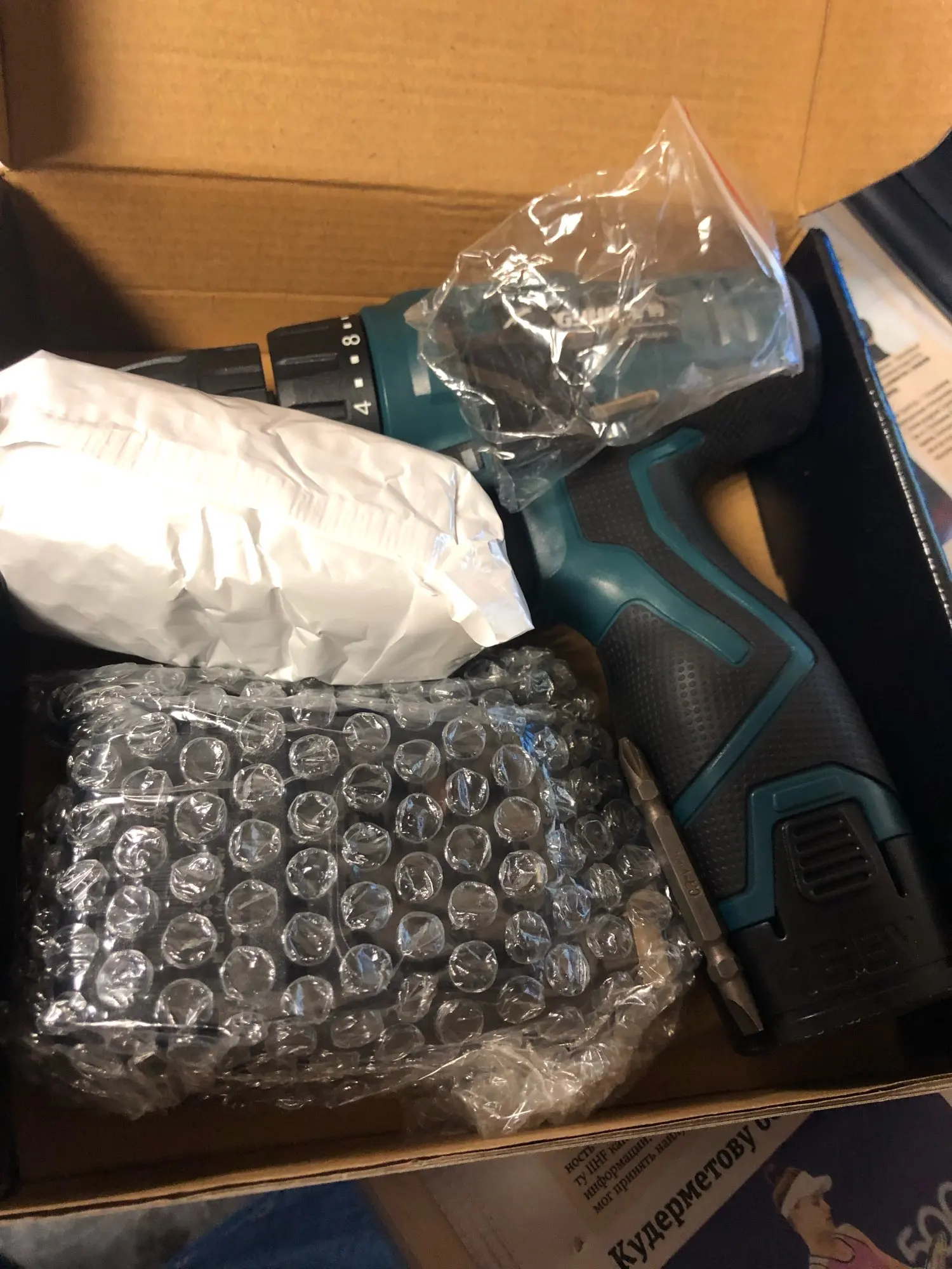 Доставлено быстро, упаковано хорошо аккуратно, всё целое. Шуруповёрт в руке седит отлично, мощности хватает, все режимы работают, зарядное заряжает хорошо, аккумуляторы были заряженные почти полностью, всё классно и отлично. Советую к покупке.