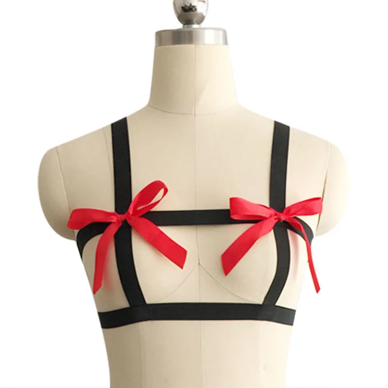 Бесплатная доставка Харадзюку Готический жгут для тела рождественские подарки красный с бантиком Сексуальное белье Связывание жгут ремень жгут клетка бюстгальтер