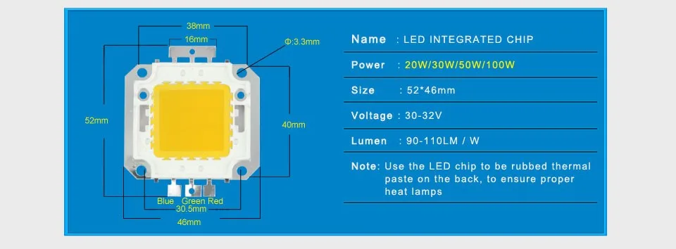 Светодиодные чипы 10 Вт, 20 Вт, 30 Вт, 50 Вт, 100 Вт, COB Светодиод...