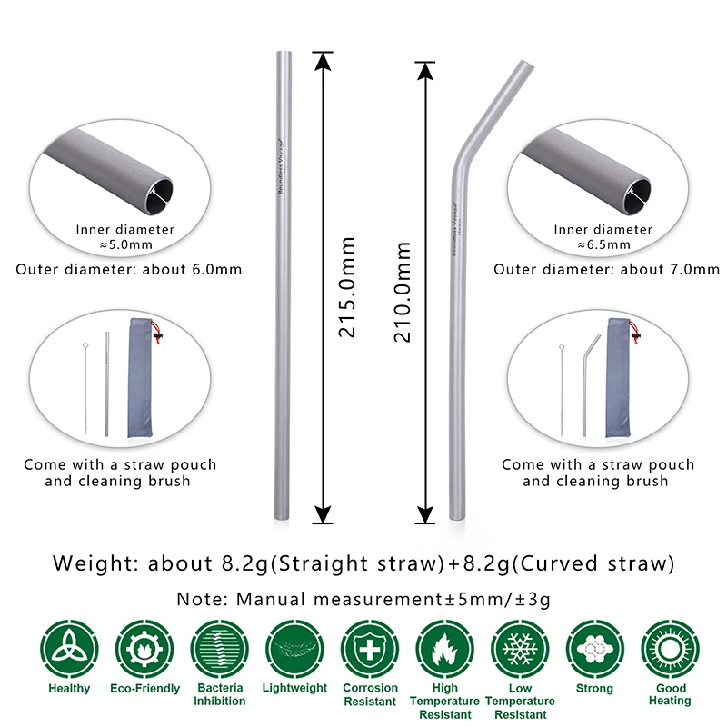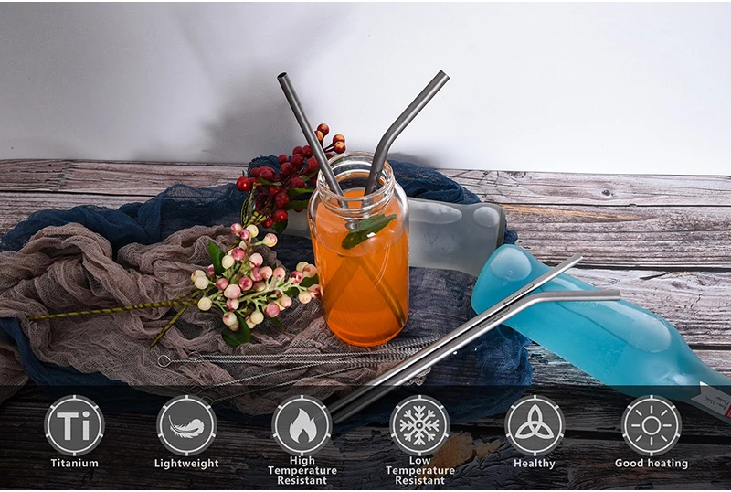 Титановая трубочка для питья, изогнутая, многоразовая, Ультралегкая