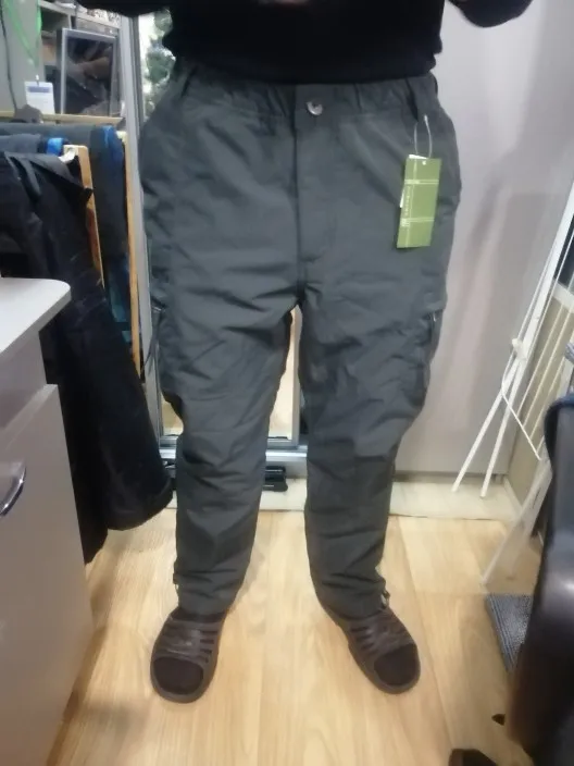очень теплые брюки, ткань водоотталкивающая. размер соответствует описанию. только ремень очень простой в комплекте, но я на него даже не расчитывал. спасибо продавцу