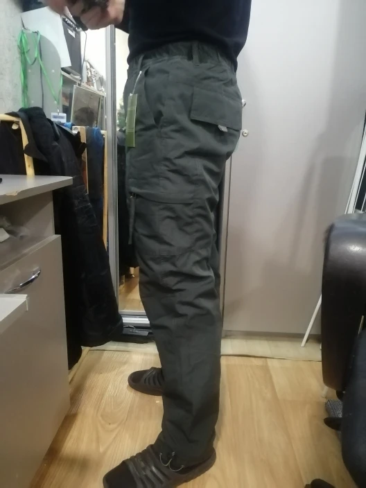 отличные штаны. берём мужу уже второй раз. единственное отличается материал верха. у черных чуть похож на балоневую ткань, а у серо-зеленых была мягкая слегка ворсистая ткань. на 52 брала XXL.