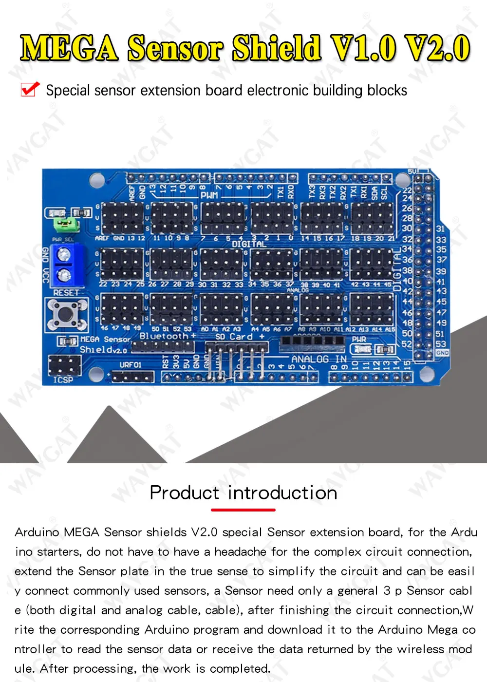 Плата расширения для Arduino датчик MEGA Shield V1.0 V2.0 MEGA 2560 Sup IIC Bluetooth SD детали для роботов сделай сам